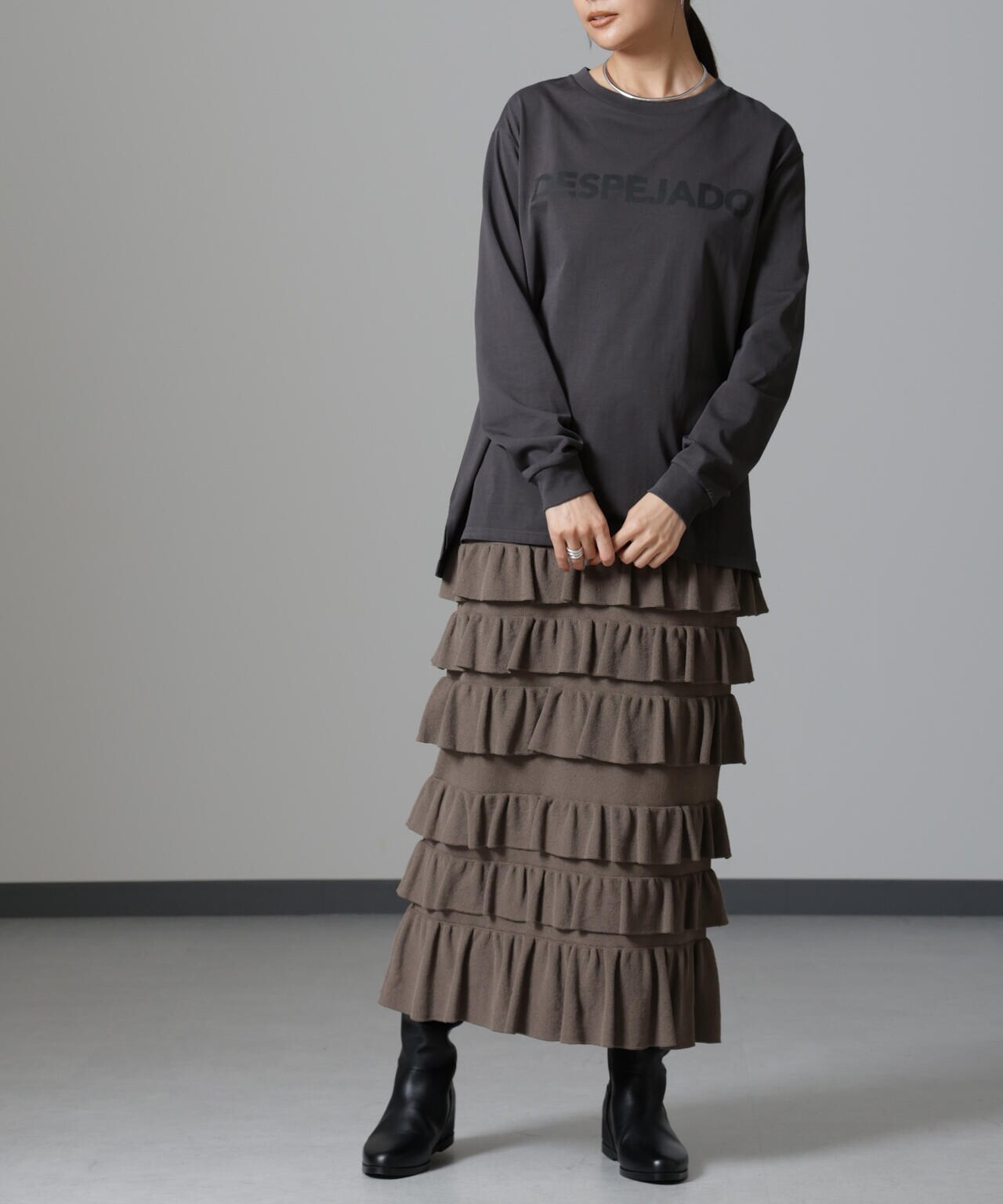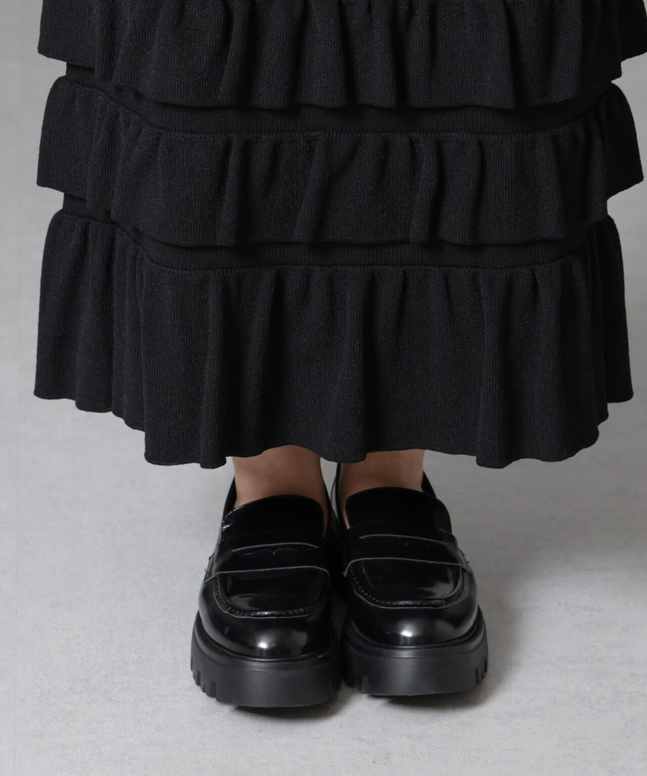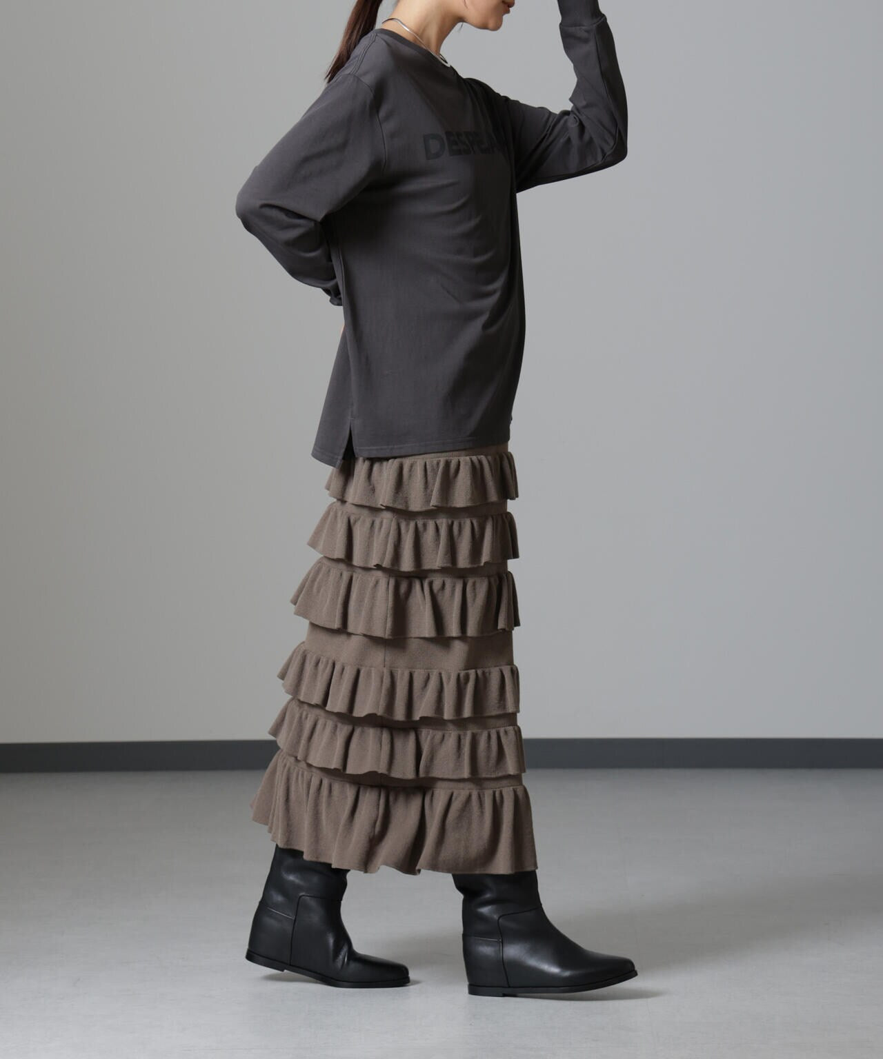・イレギュラーピッチのミニフリルがポイントのニットスカート