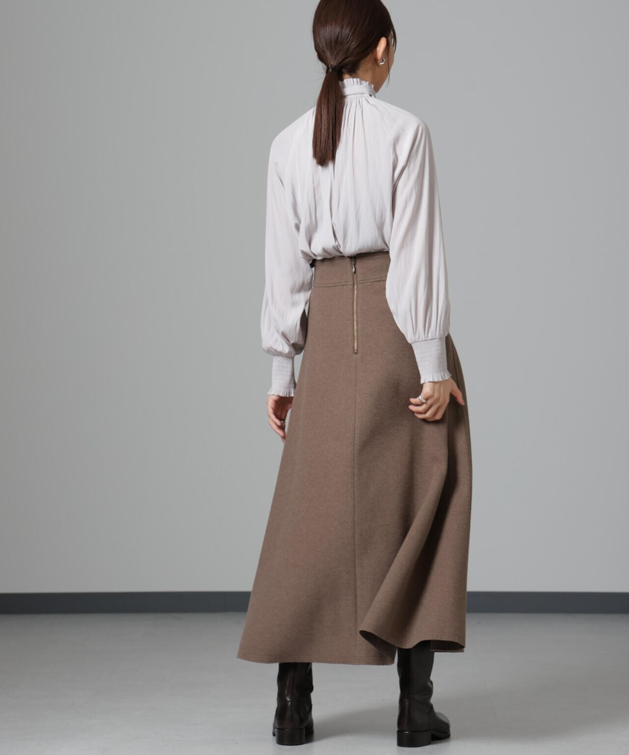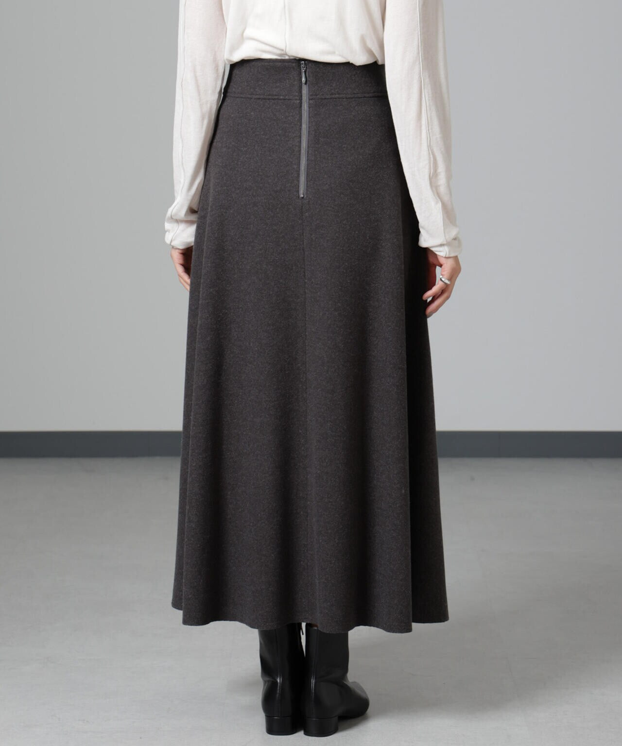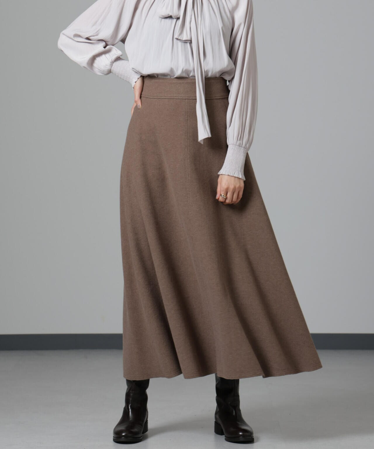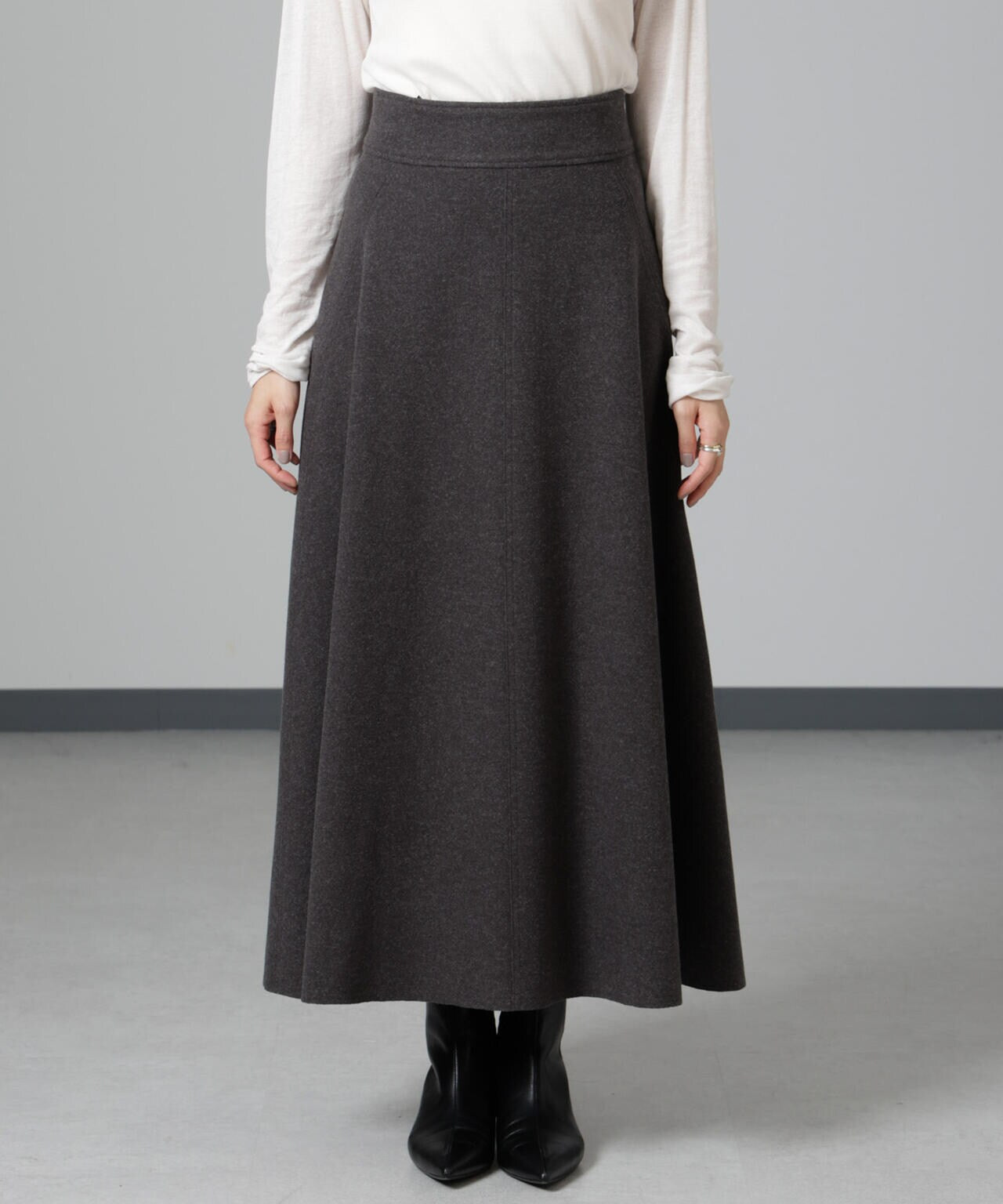 腰回りからすそにかけて程よいすっきりとしたラインに仕上げの女性らしいフレアスカート。切り替えラインと裾は断ち切りにしているので、もたつかず裾の揺れ感が軽やかできれいなラインを作ってくれます。シンプルでどんなトップスにも合わせやすく、ワードローブに追加しておくと重宝しそう!