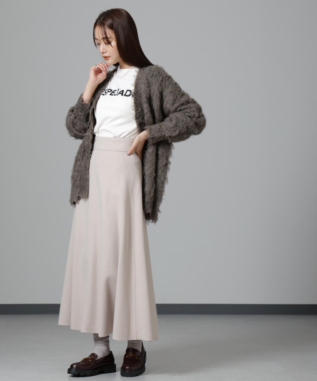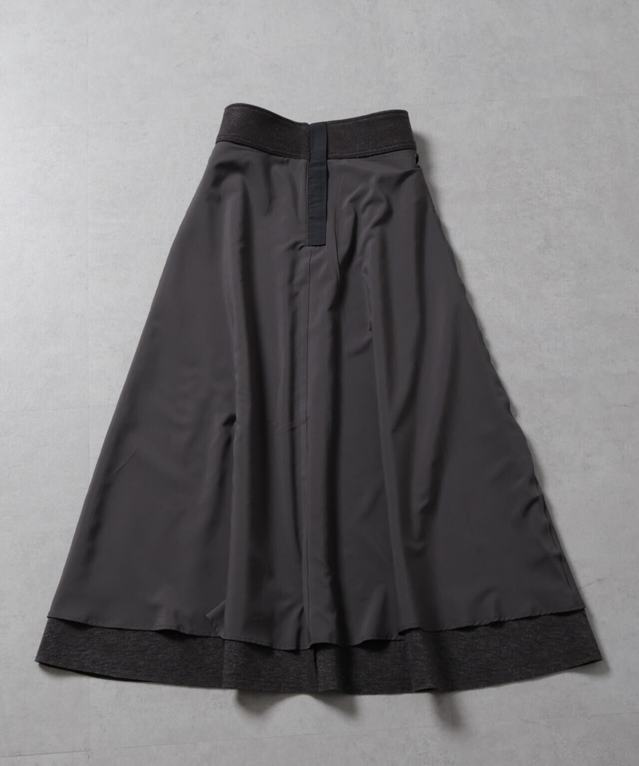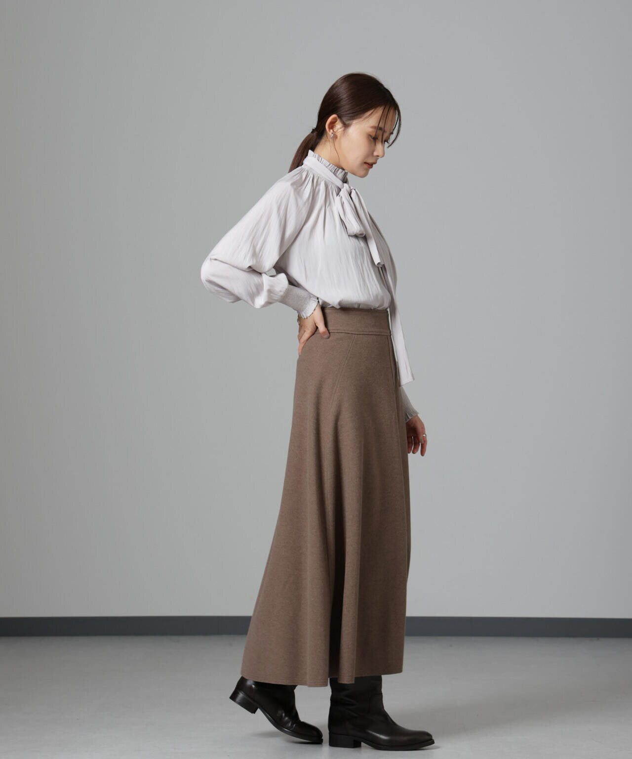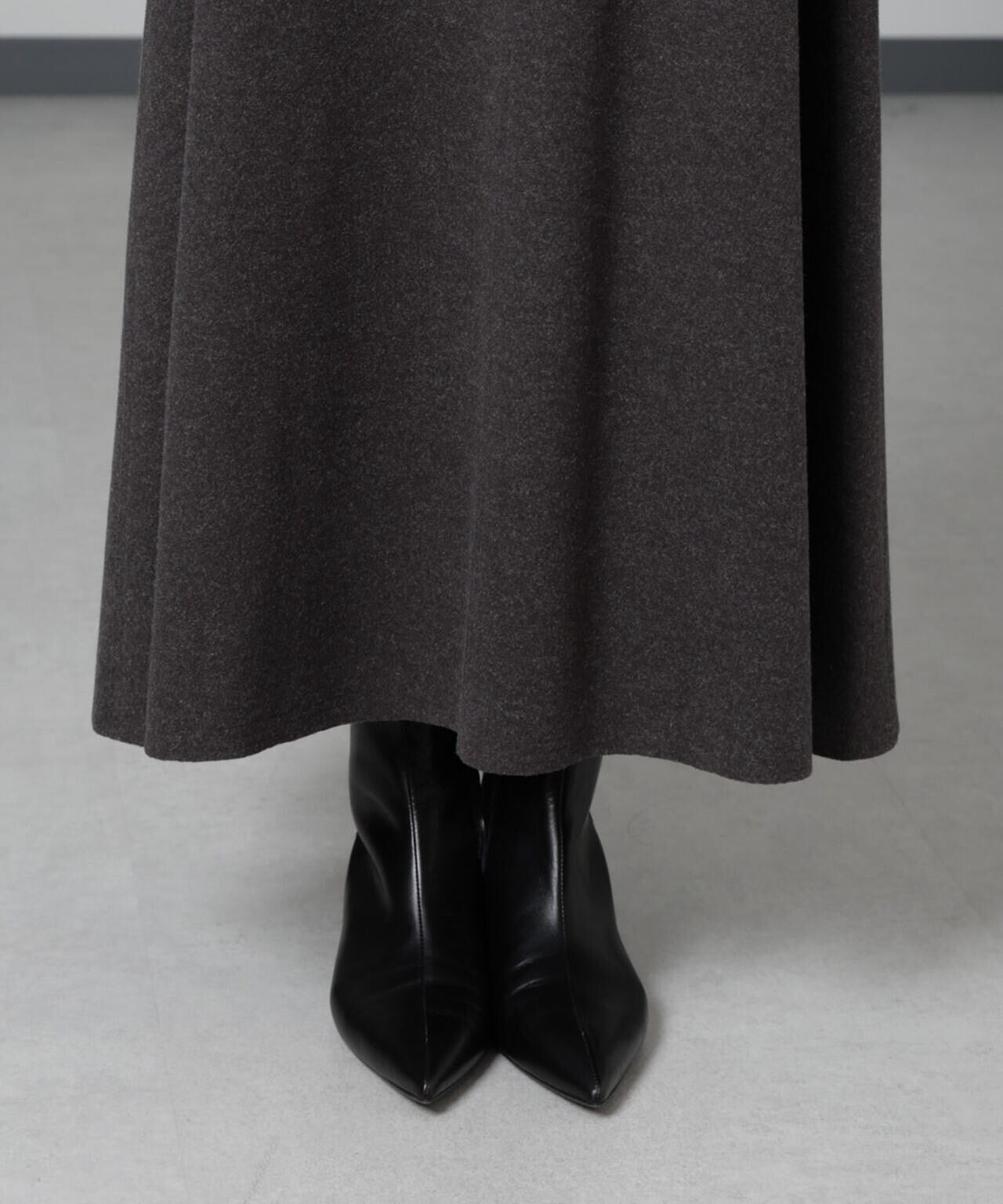 腰回りからすそにかけて程よいすっきりとしたラインに仕上げの女性らしいフレアスカート。切り替えラインと裾は断ち切りにしているので、もたつかず裾の揺れ感が軽やかできれいなラインを作ってくれます。シンプルでどんなトップスにも合わせやすく、ワードローブに追加しておくと重宝しそう!