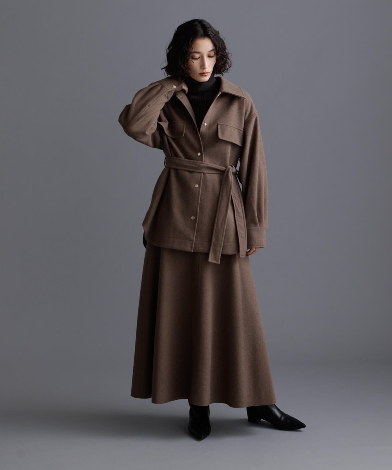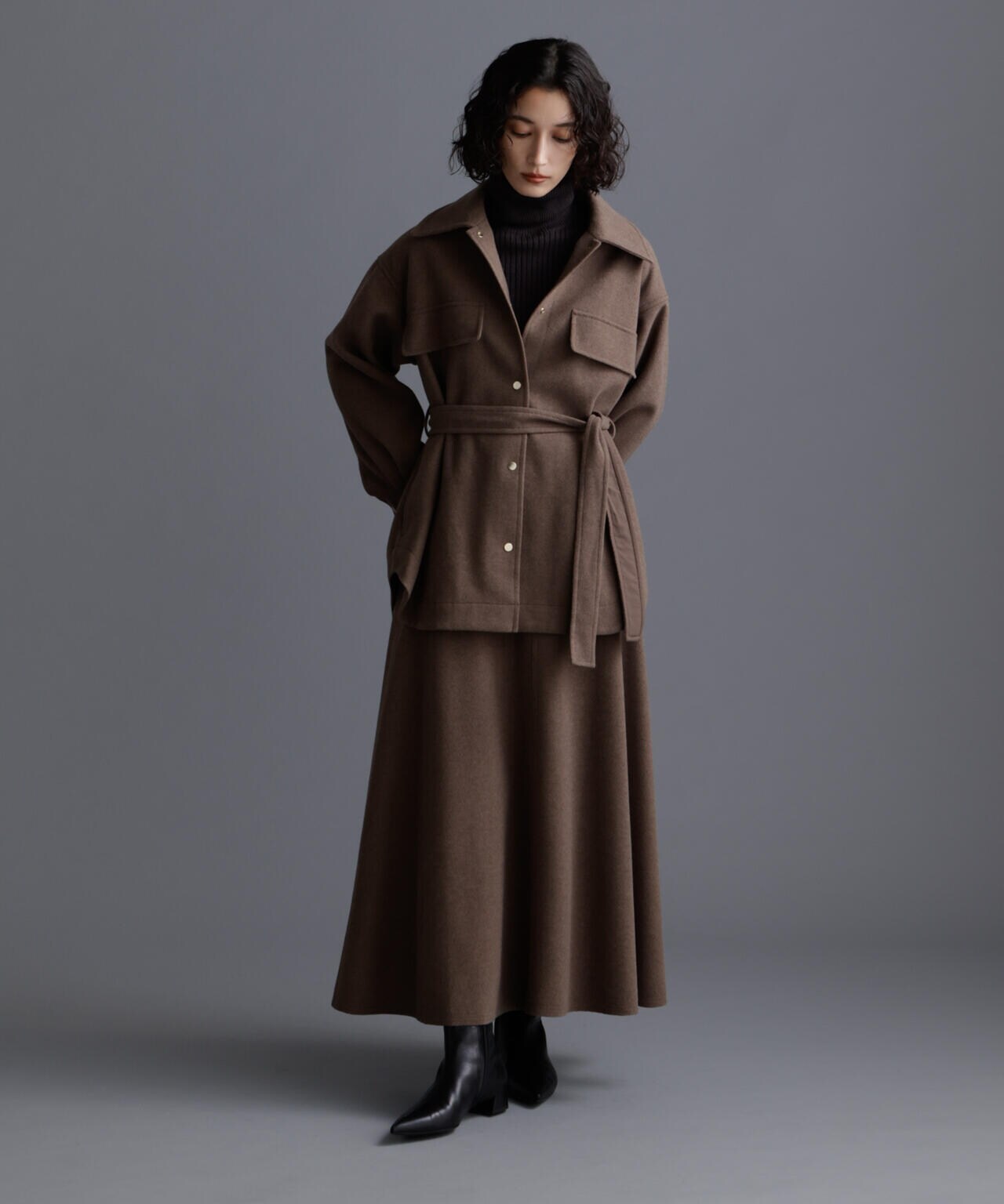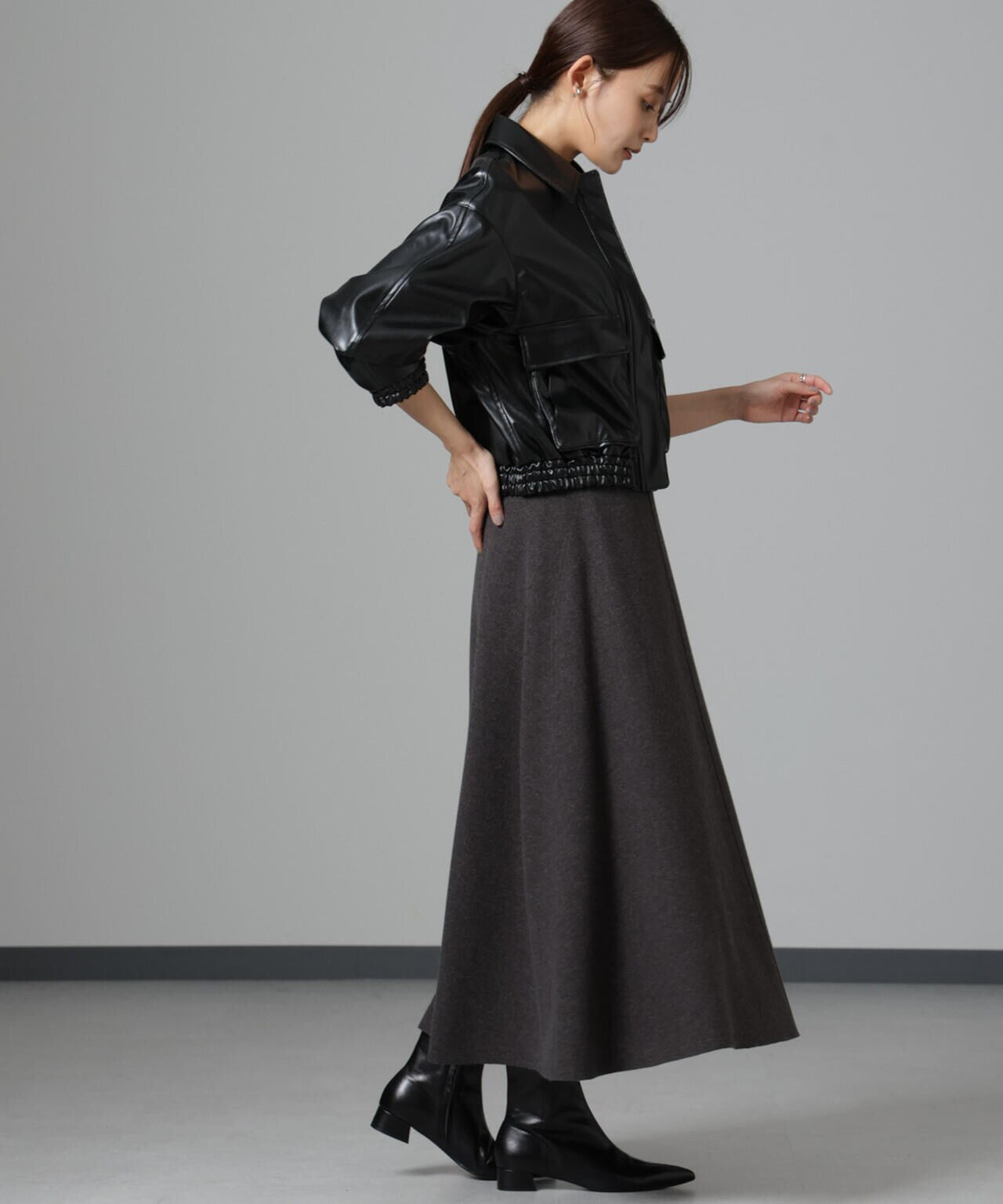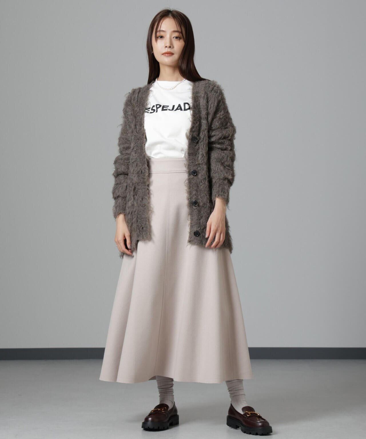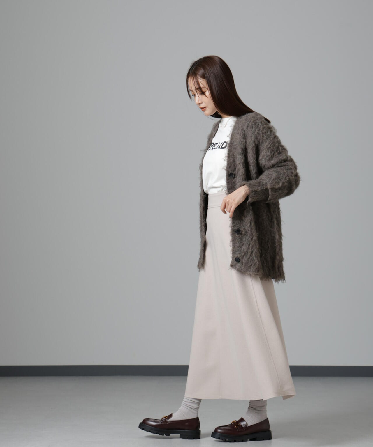 腰回りからすそにかけて程よいすっきりとしたラインに仕上げの女性らしいフレアスカート。切り替えラインと裾は断ち切りにしているので、もたつかず裾の揺れ感が軽やかできれいなラインを作ってくれます。シンプルでどんなトップスにも合わせやすく、ワードローブに追加しておくと重宝しそう!