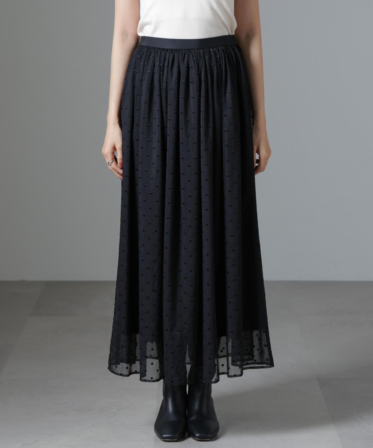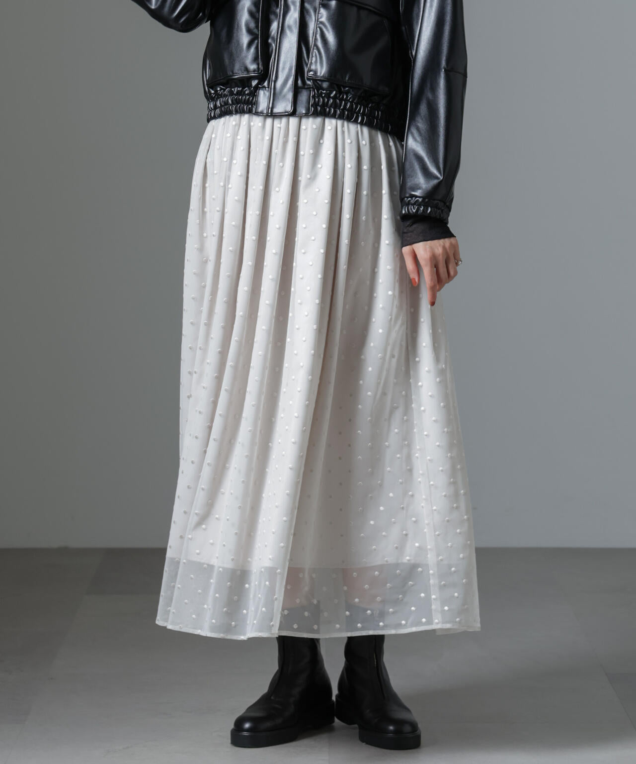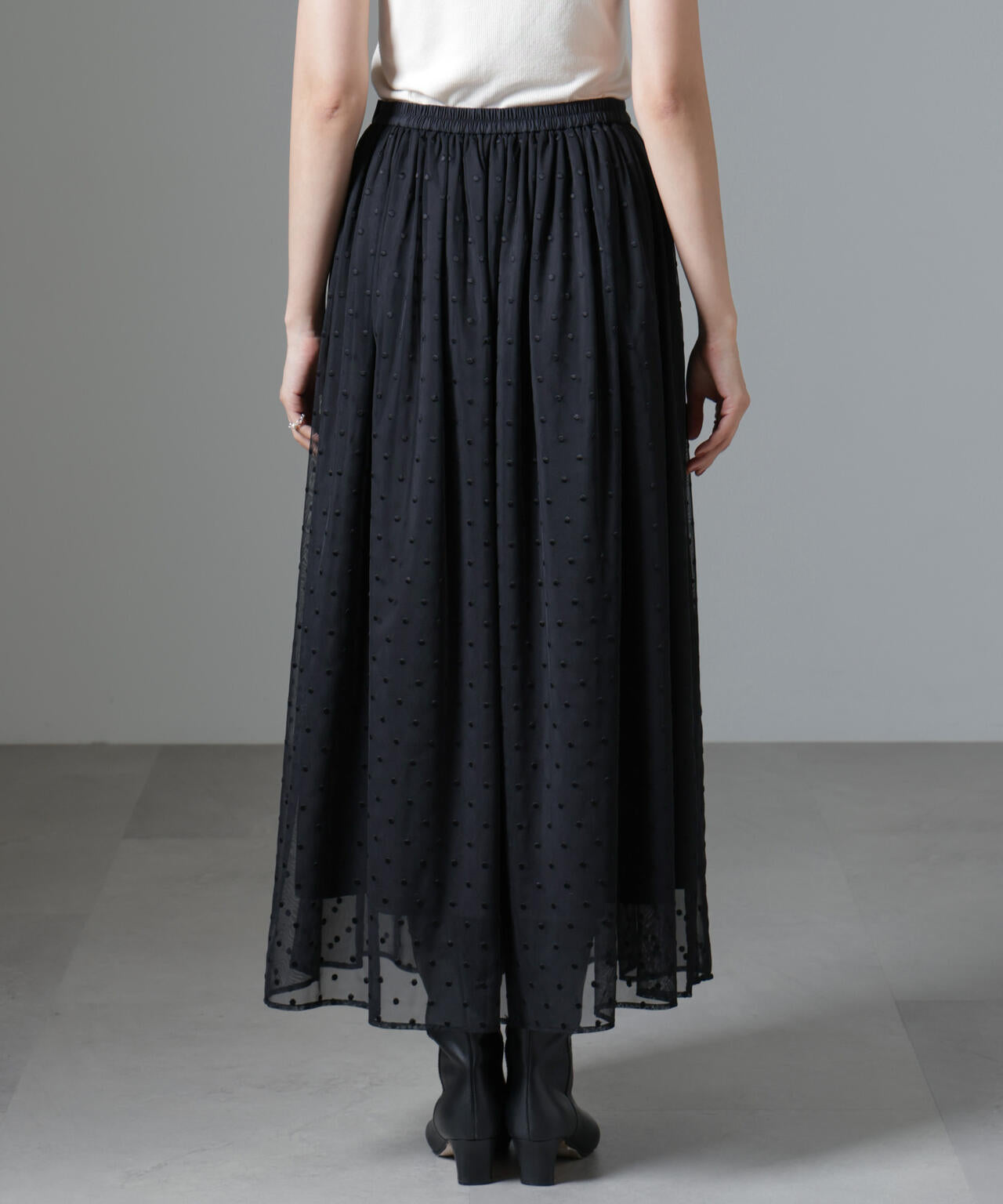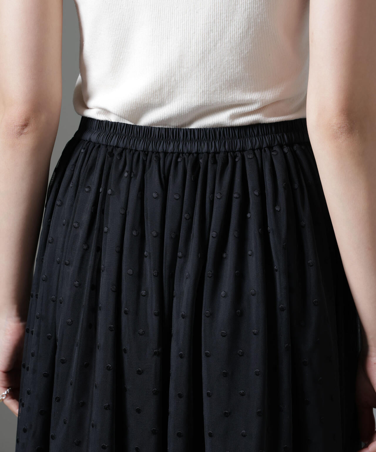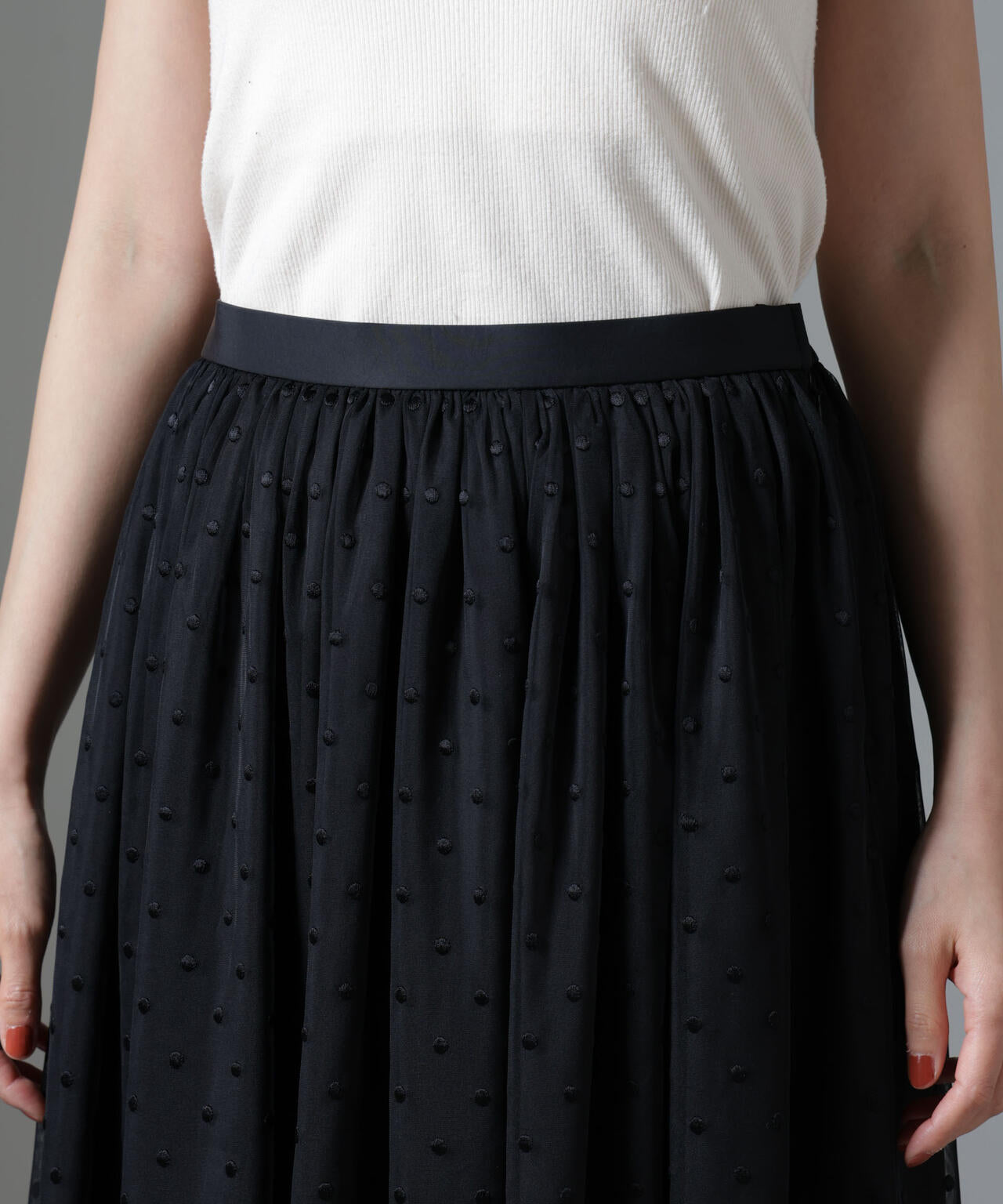 ドット刺繍チュールギャザースカート