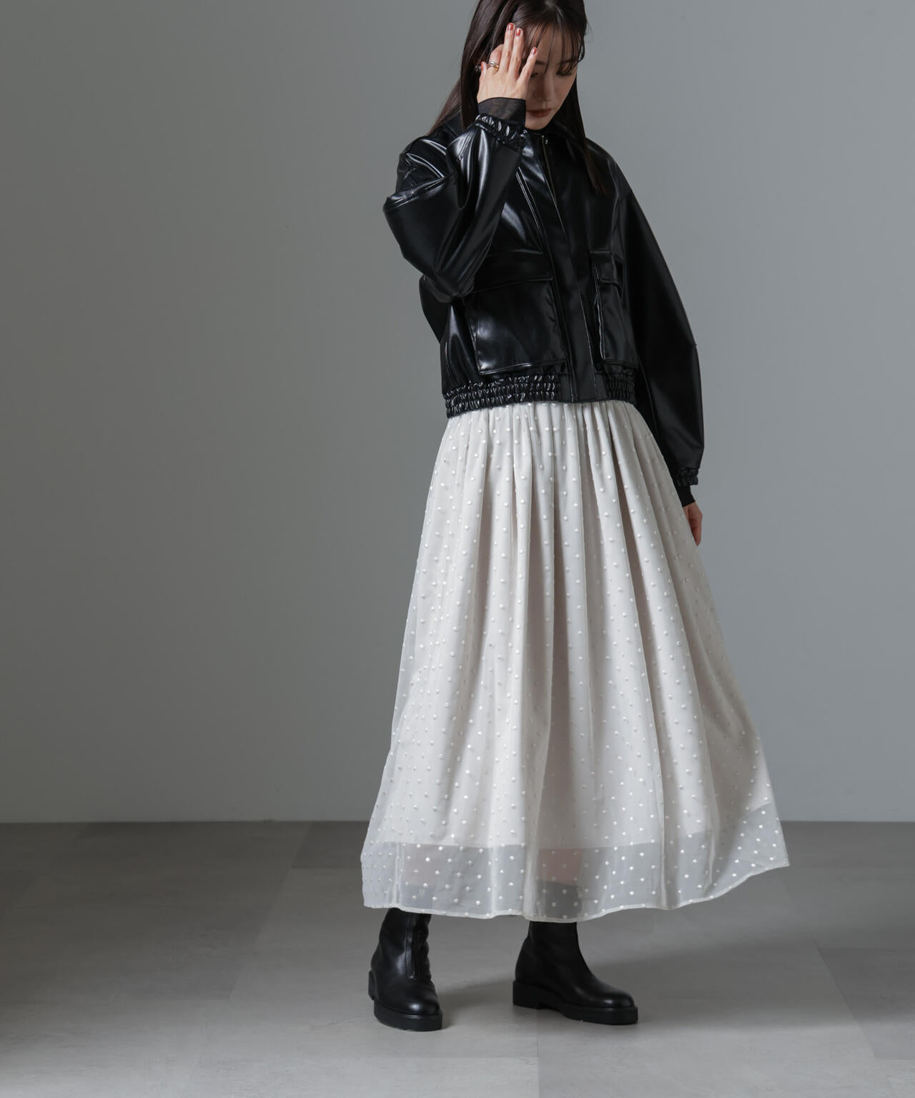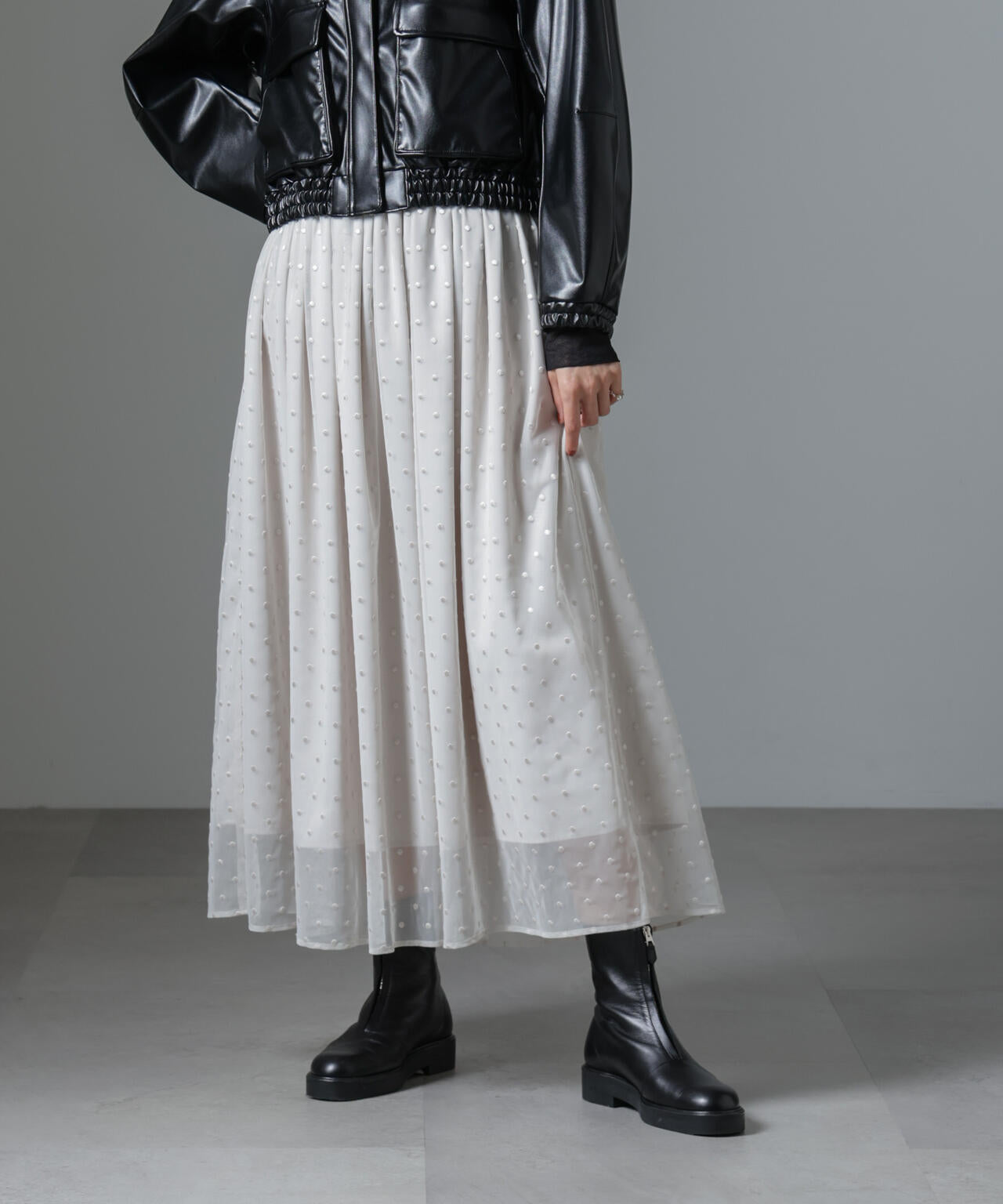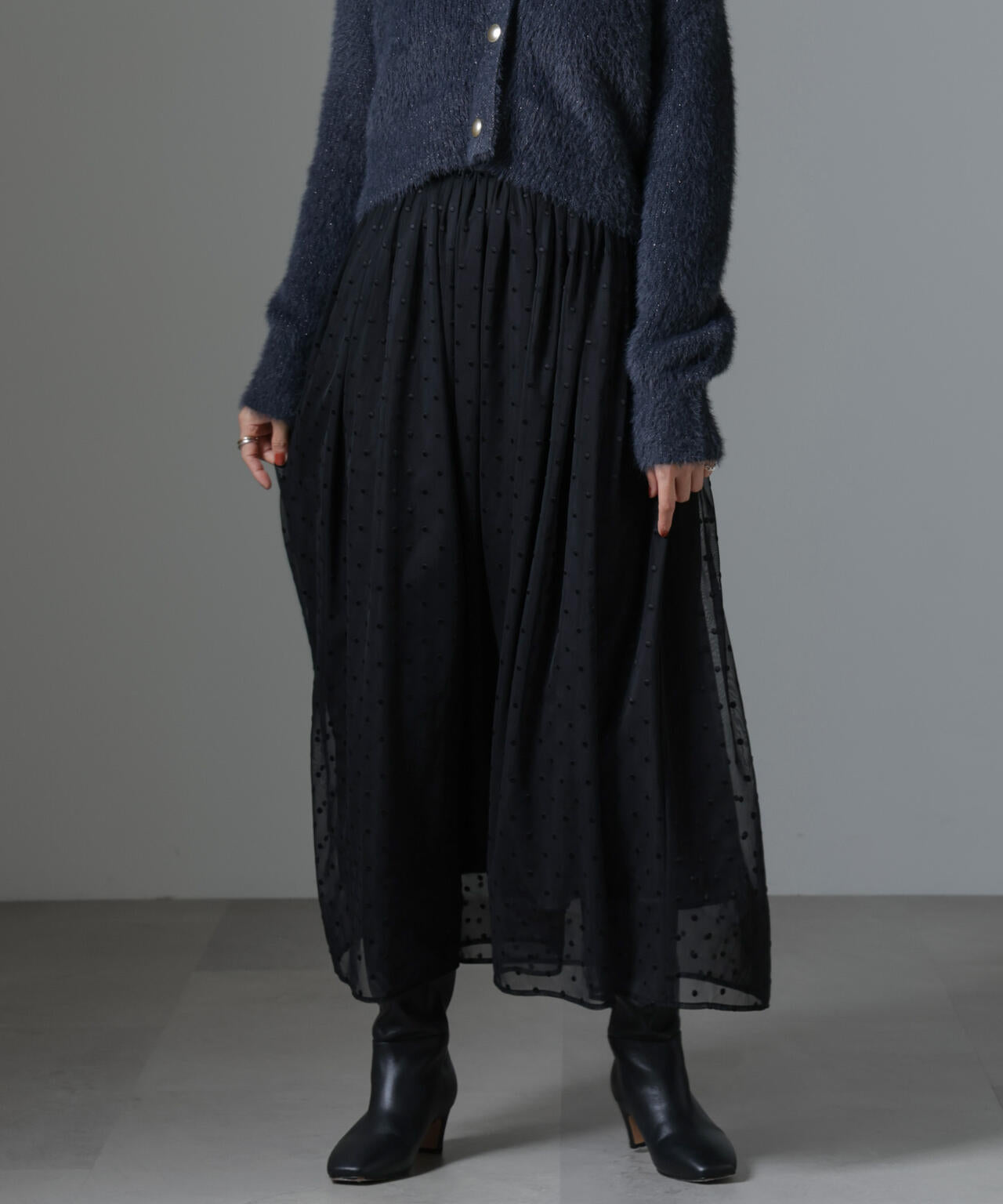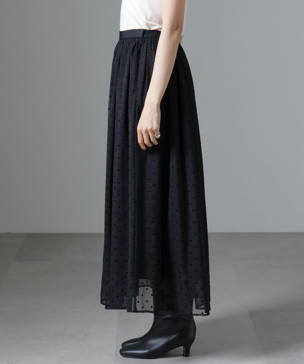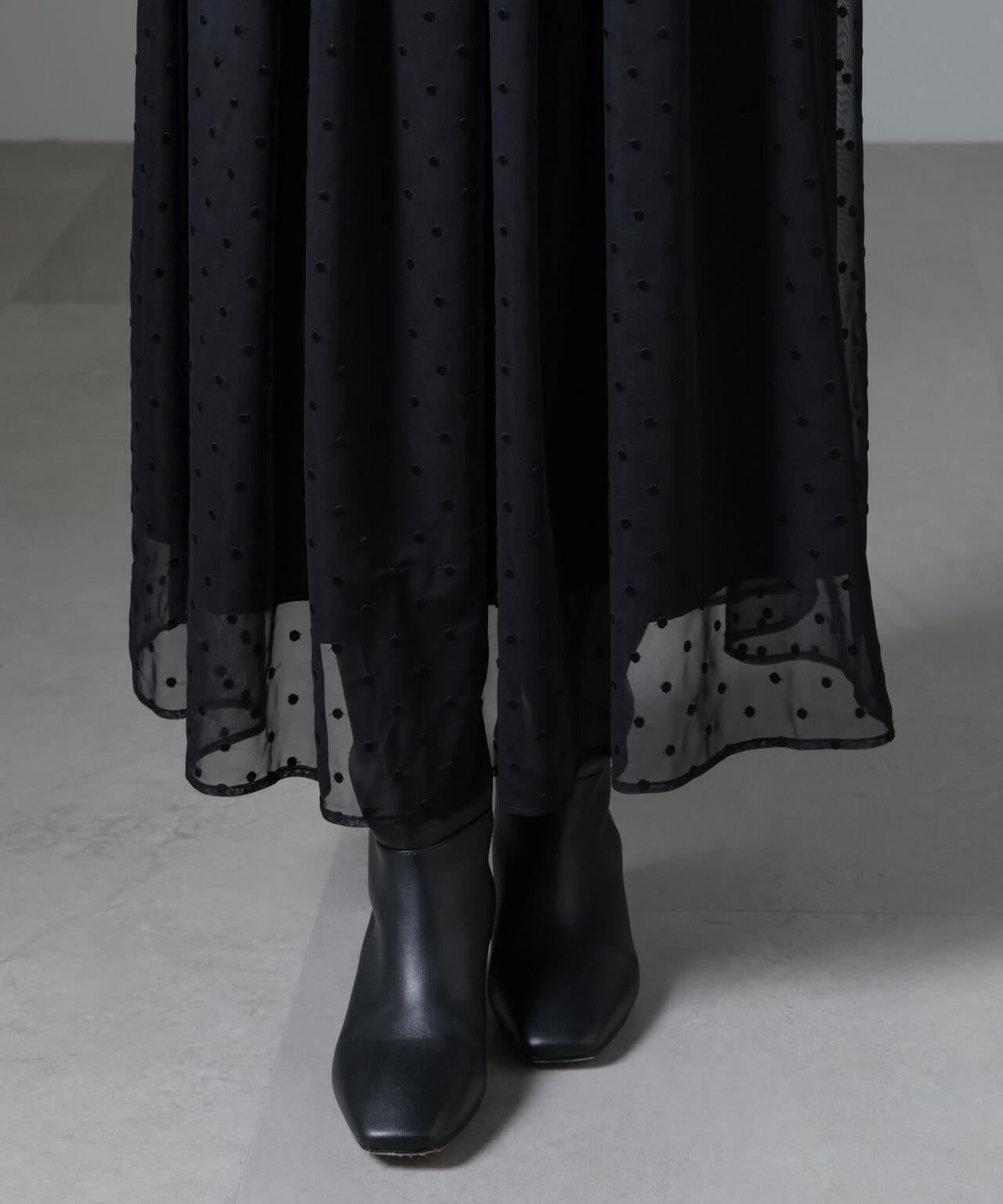 ドット刺繍チュールギャザースカート