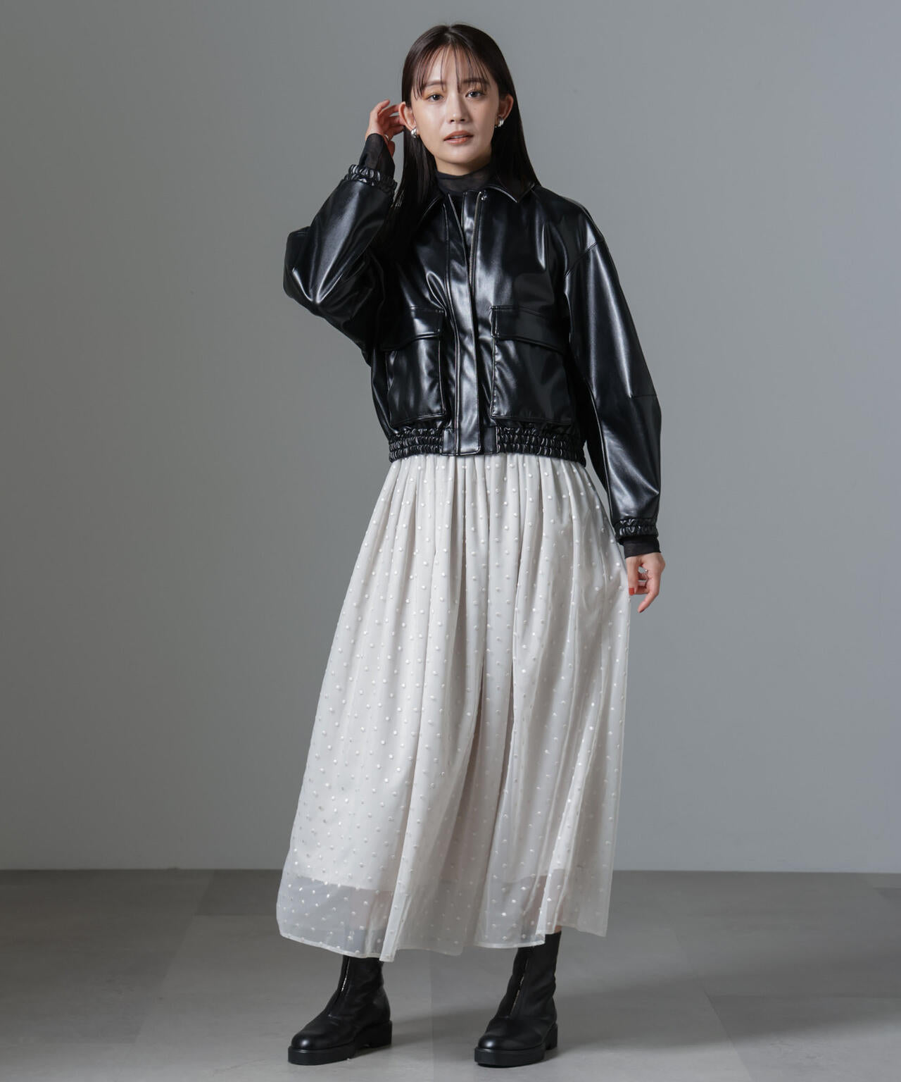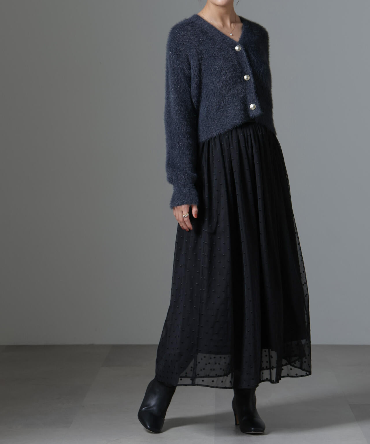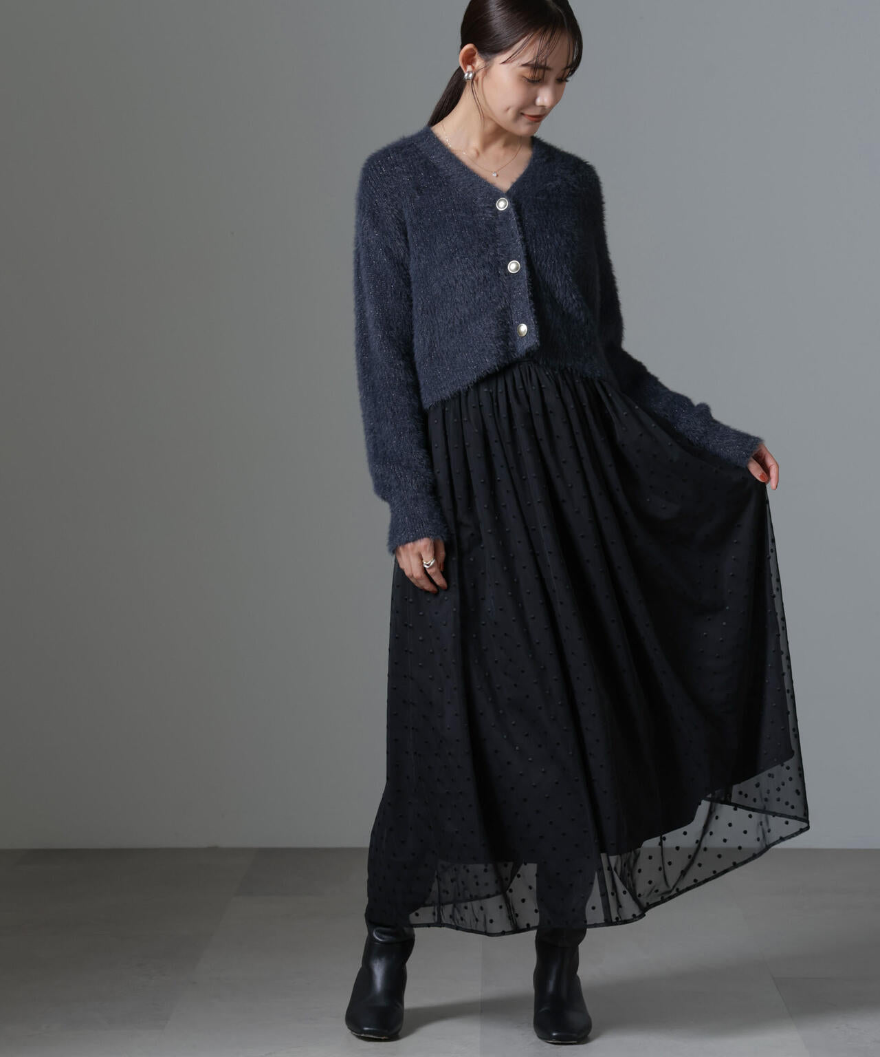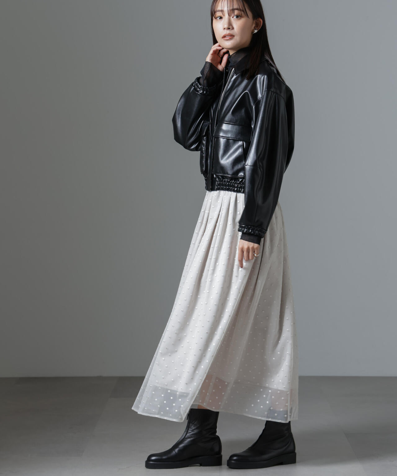 ・ドット刺繍の入った柔らかなチュール素材