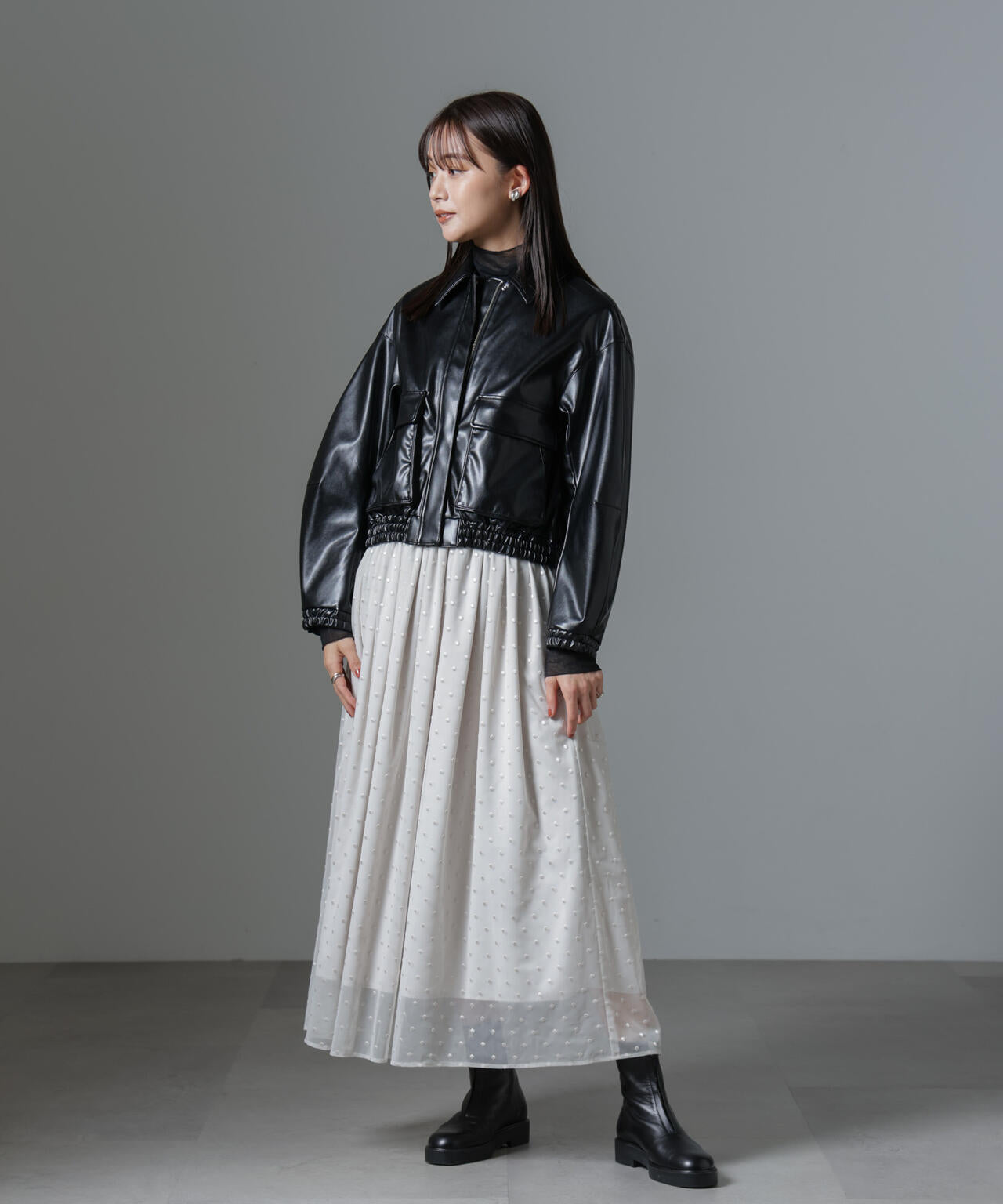 ・甘さを控えた女性らしいギャザースカート