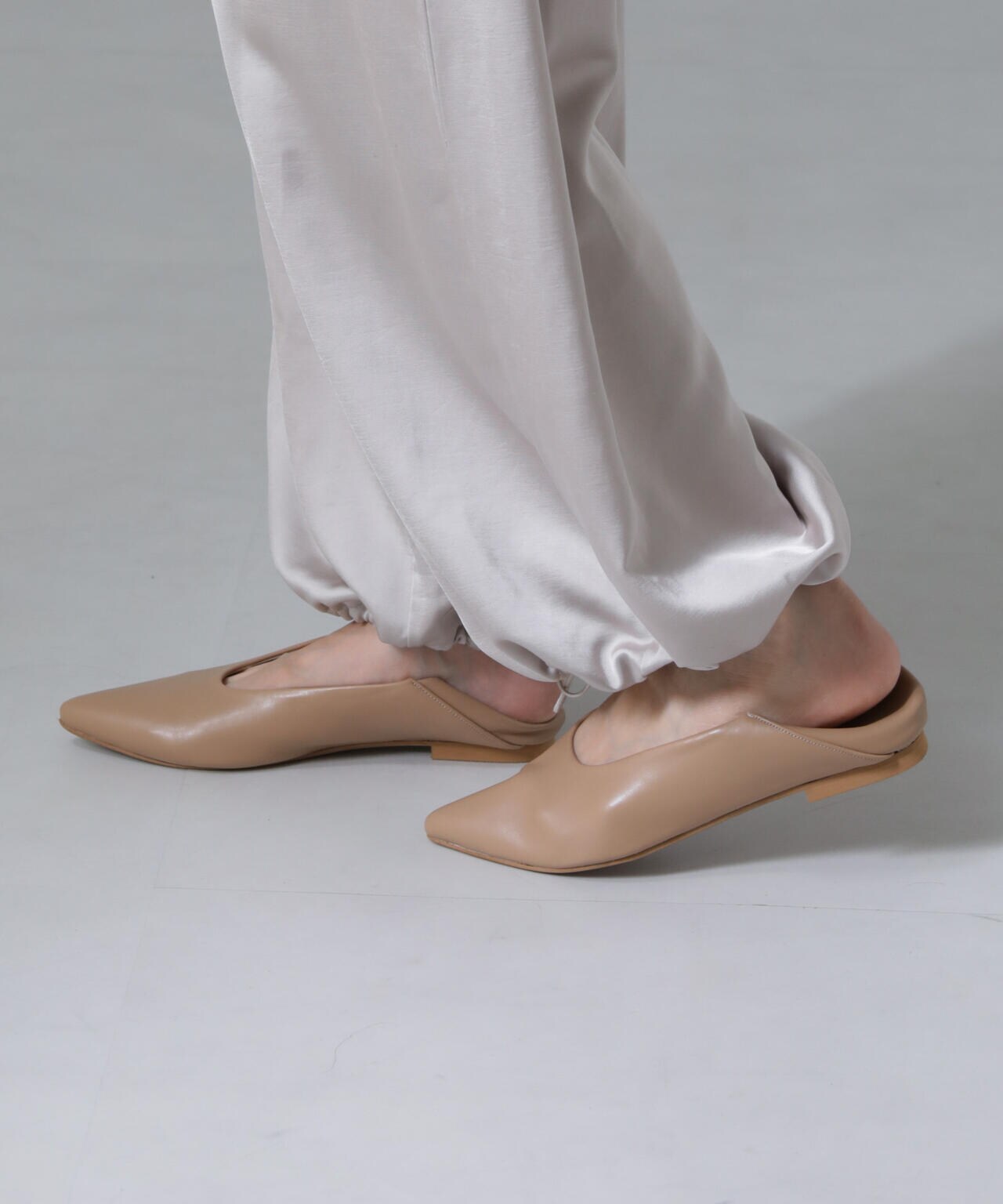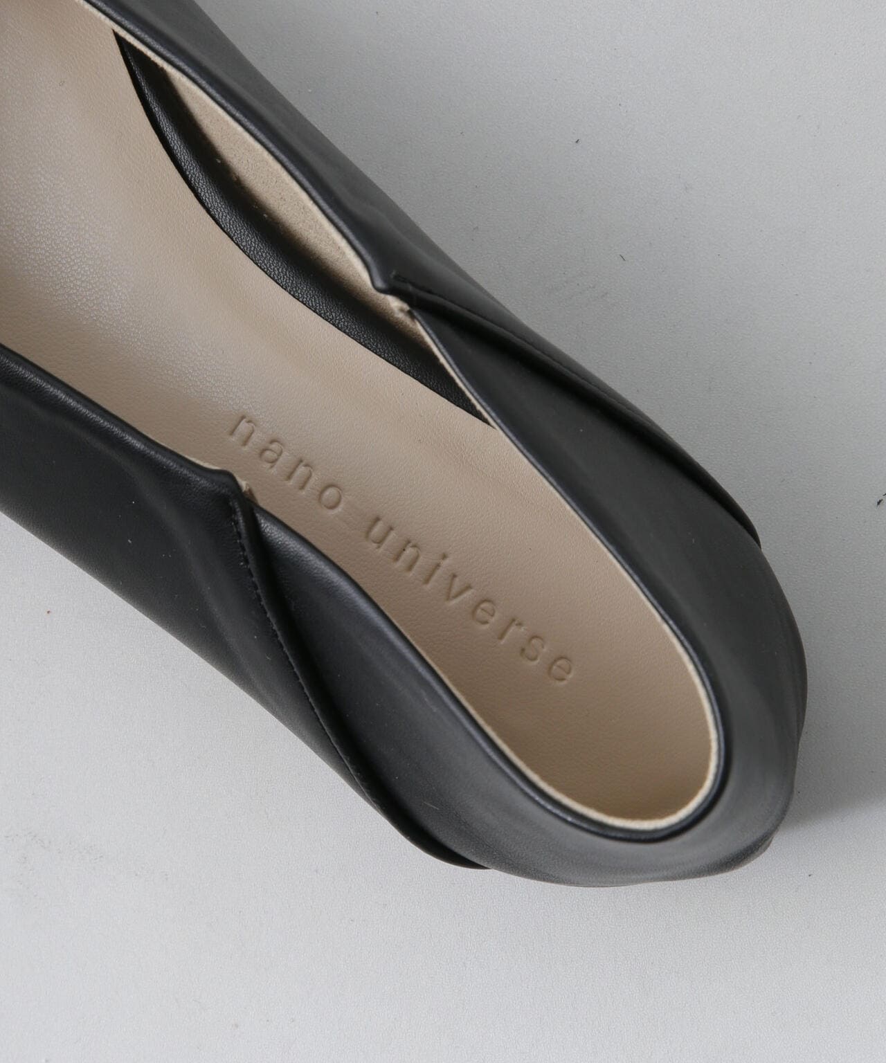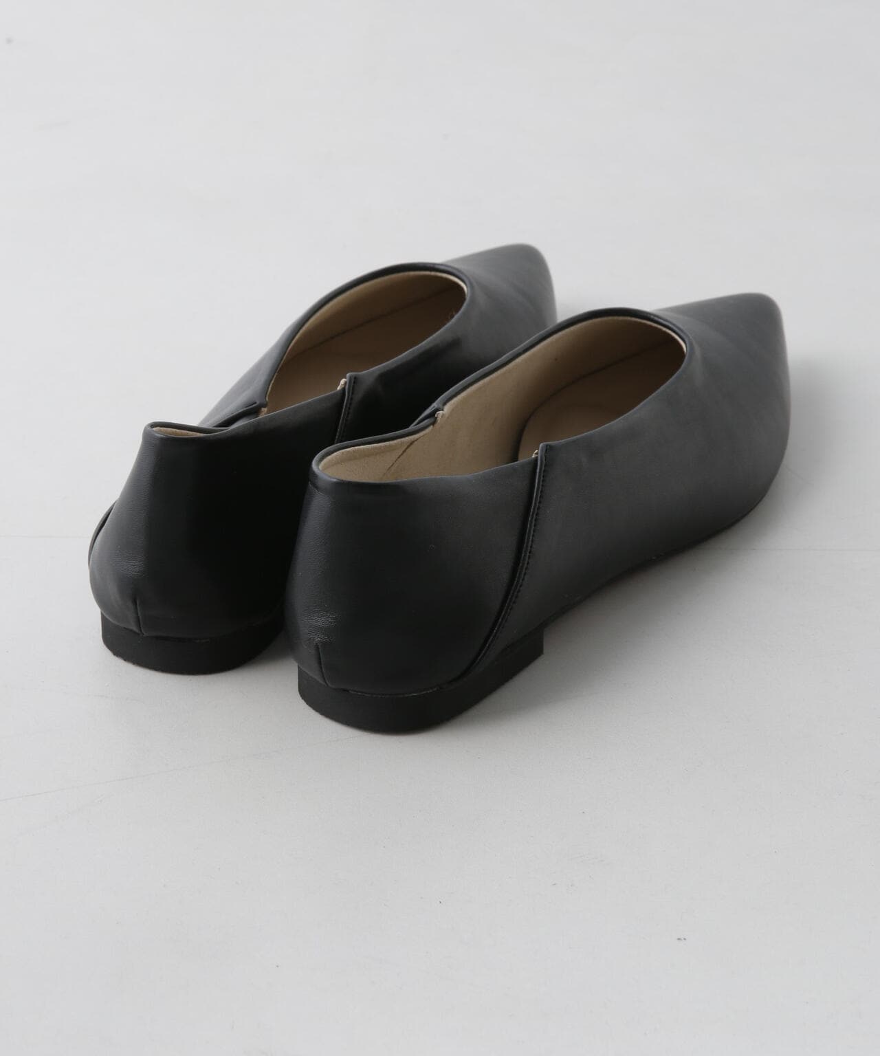 アーモンドトゥのコロっとしたフォルムが特徴のバレエシューズ。やや光沢感のある柔らかいフェイクレザーを使用しており、快適な履き心地ながらも程よくきれいな印象をキープ。かかとを折って履くこともできる2wayタイプで、スリッパ型にしてカジュアルなスタイルも楽しめる逸品です。