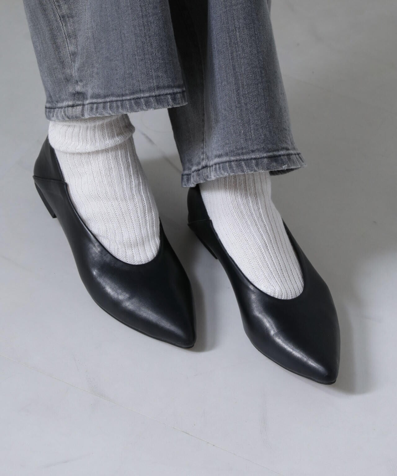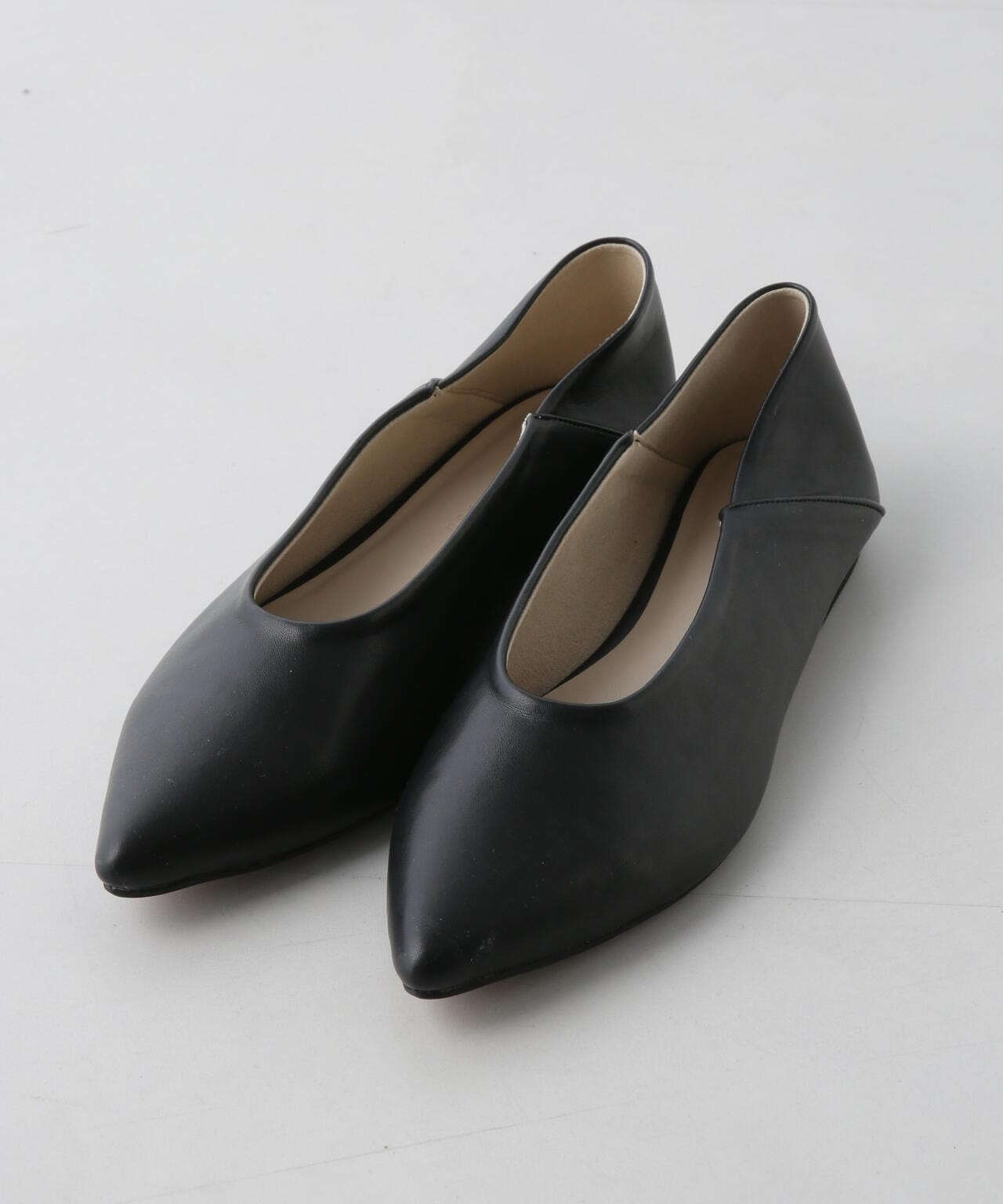 ・アーモンドトゥのコロっとしたフォルムが特徴のフラットシューズ