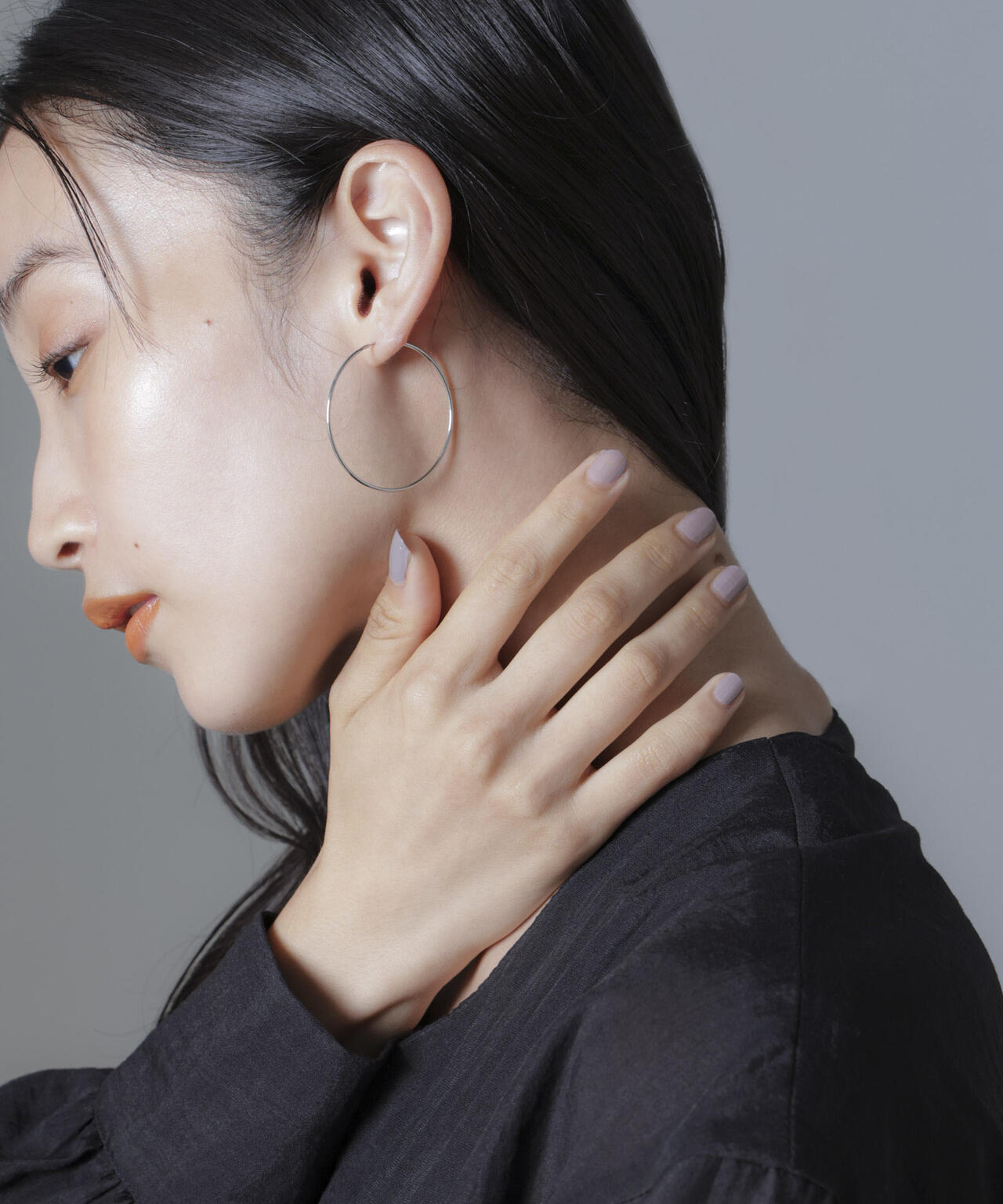 大人っぽいシンプルなフープピアス。太すぎない繊細な細さがポイントで、華美すぎずオンオフ両用でお使いいただけます。