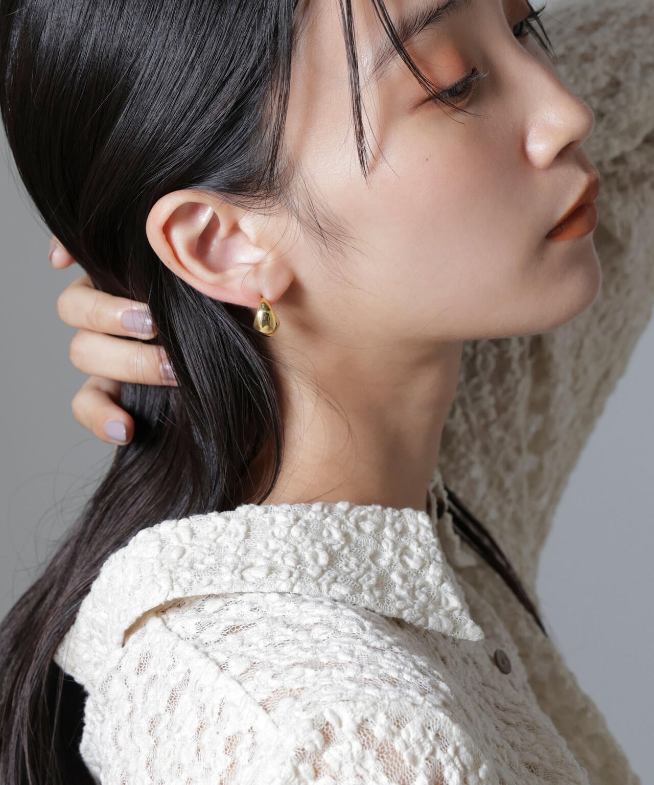丸みと厚みのあるコロッとしたフォルムのハーフラウンドピアス。小ぶりながら存在感のあるフォルムが顔周りのポイントになります。