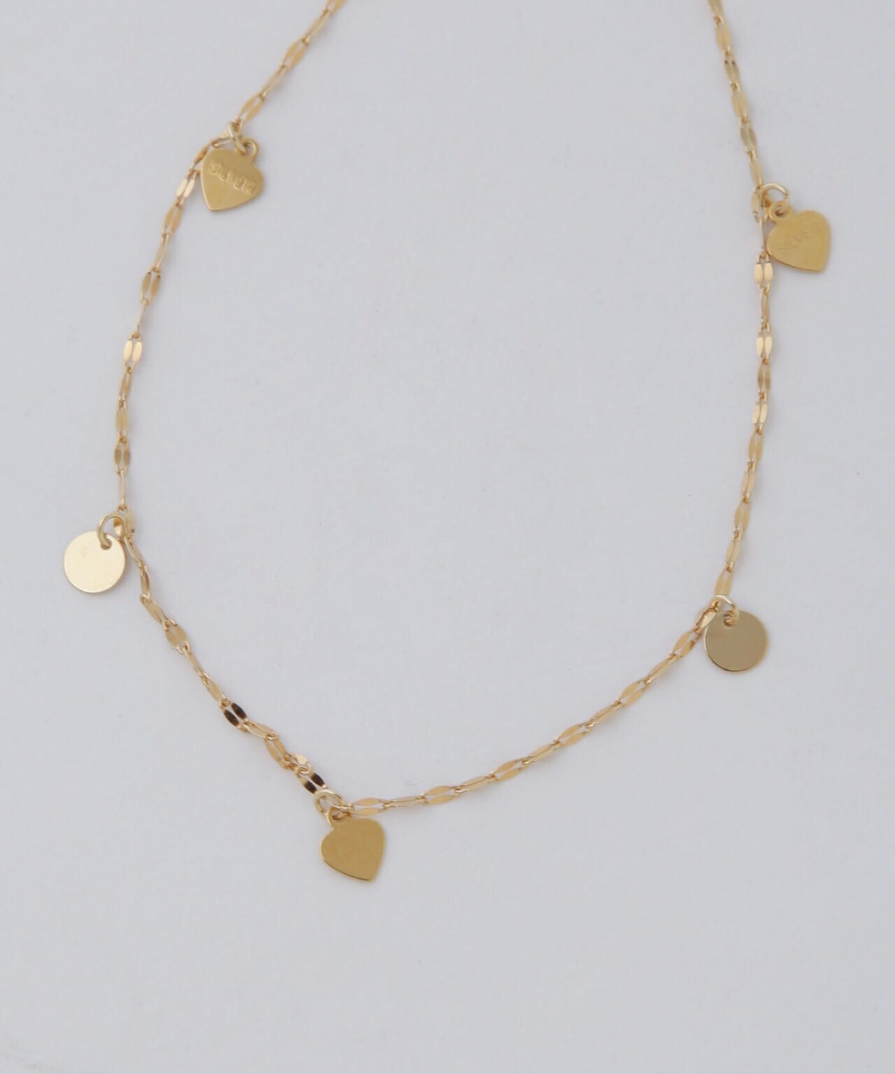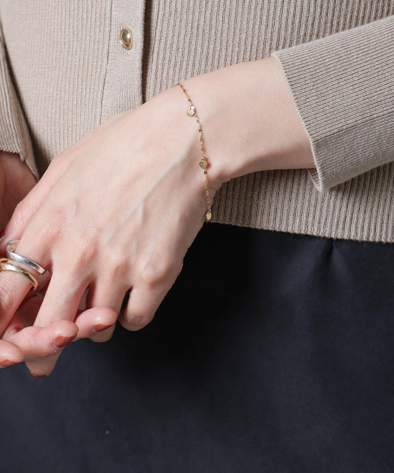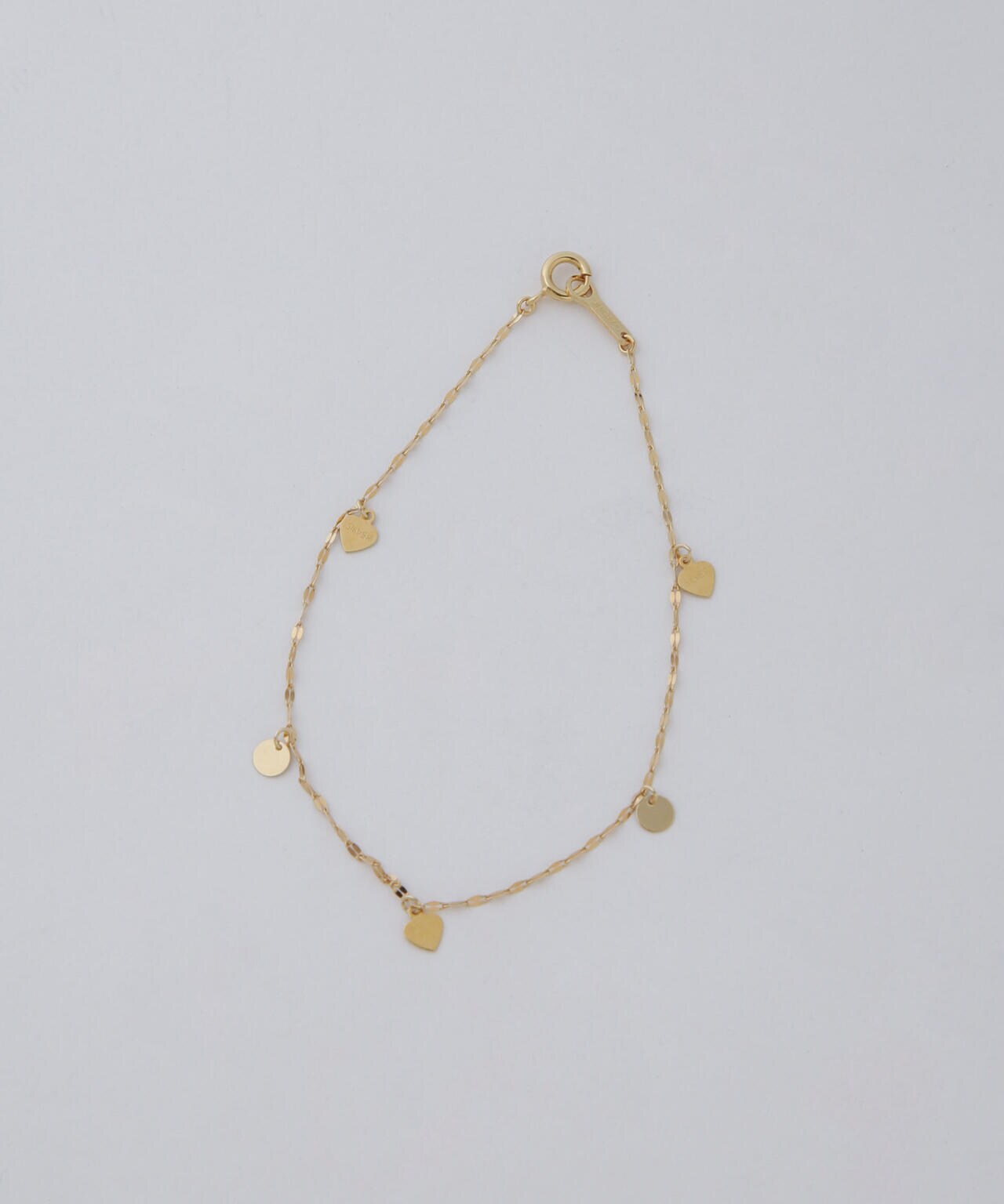 小ぶりで繊細なチェーンに小さなハートとラウンドのプレートをつけた、華やかなブレスレット。手元を華奢に見せてくれる繊細なデザインで、ご自身へのご褒美にはもちろんプレゼントにもおすすめです。