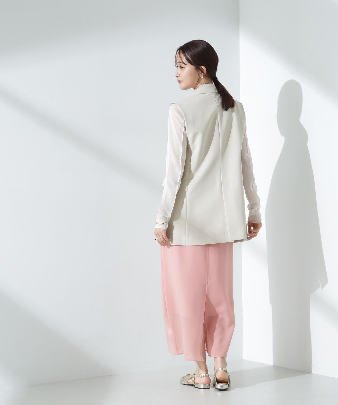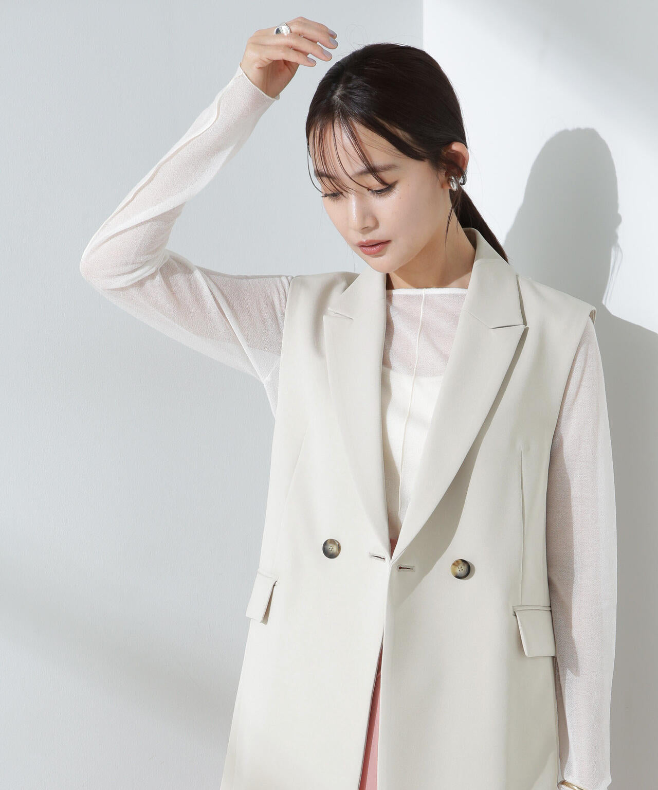 多機能で快適な着心地が叶う、「デイリーファンクション」シリーズのダブルジレ。女性らしいブラウスと合わせてきちんと感のあるスタイルや、Tシャツやシアーインナーと合わせてデイリーの着回しなど、コーディネートの幅が広がるアイテムです。