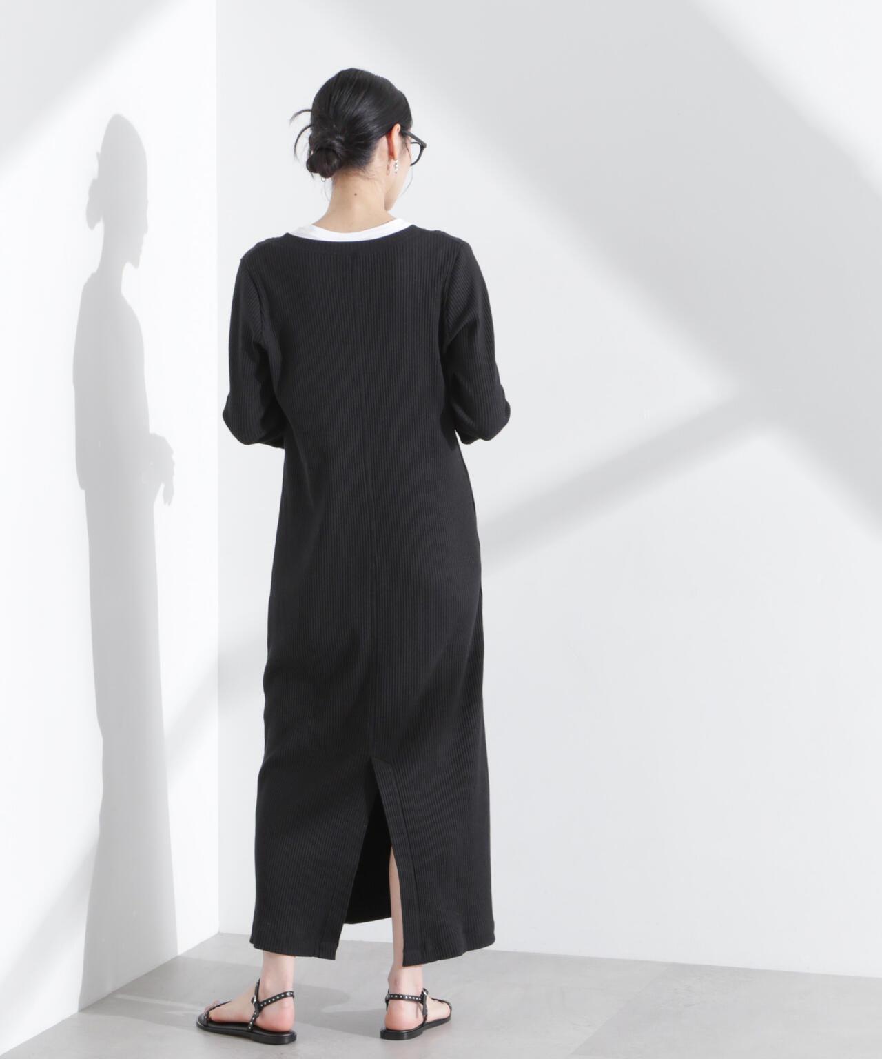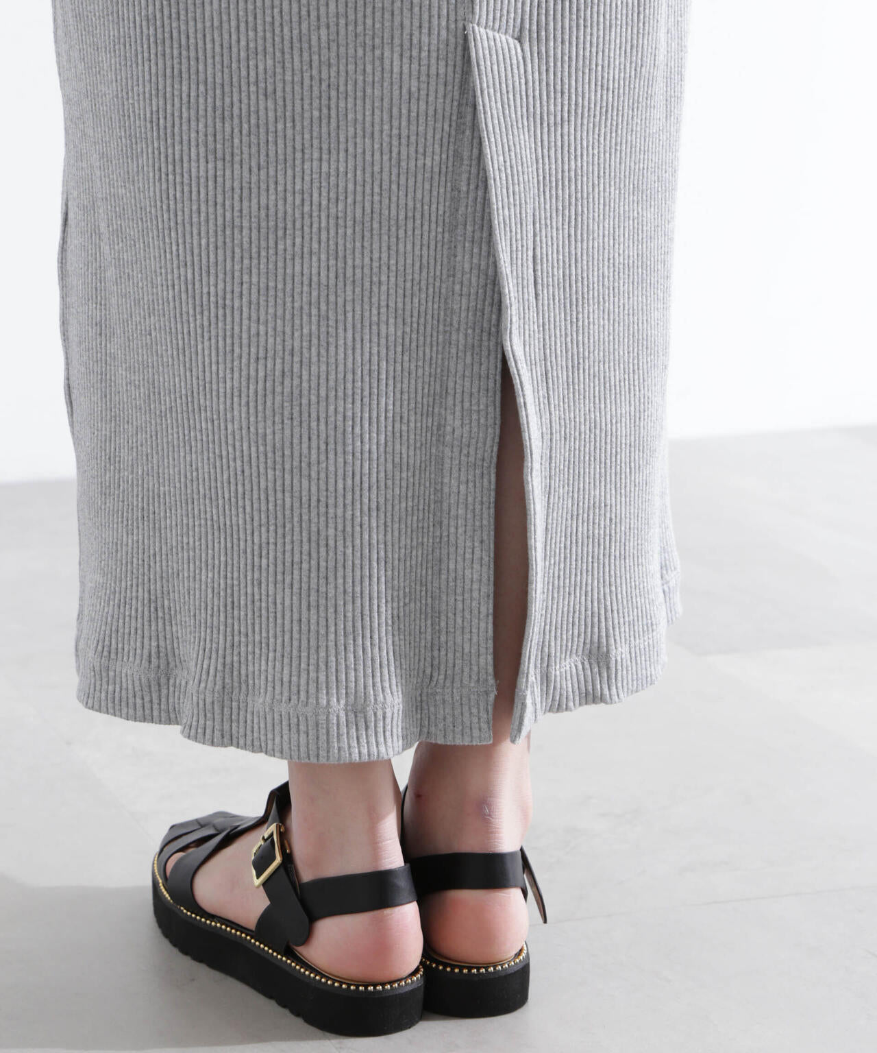 ・縦長見えするマキシ丈の後ろ裾はベンツスリット仕様