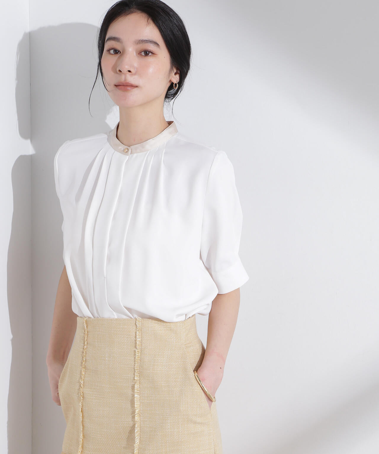 ・オンスタイルに重宝するきれいめデザインの半袖ブラウス
