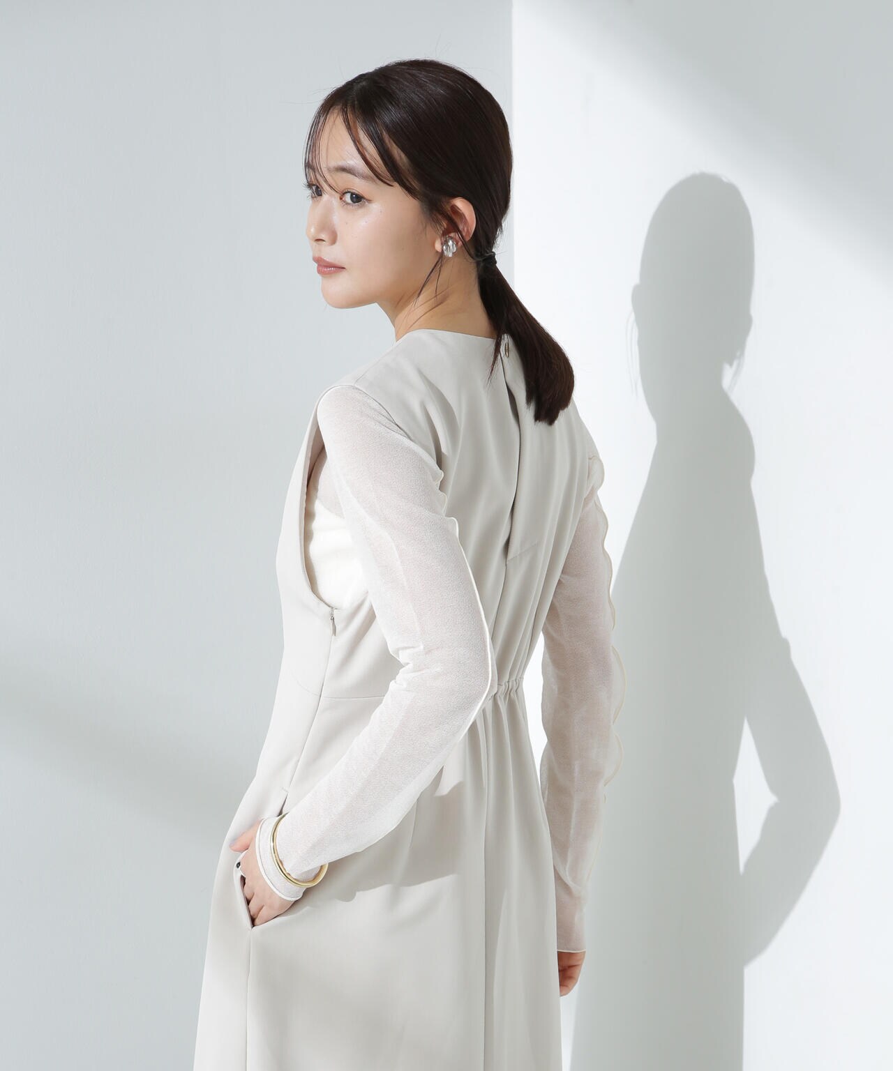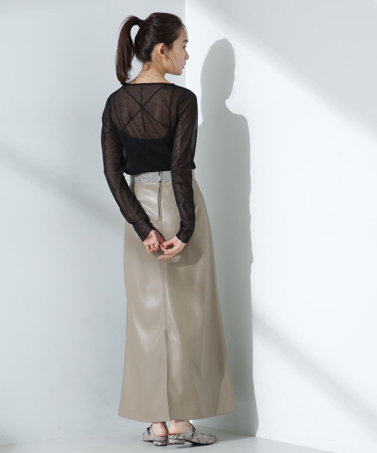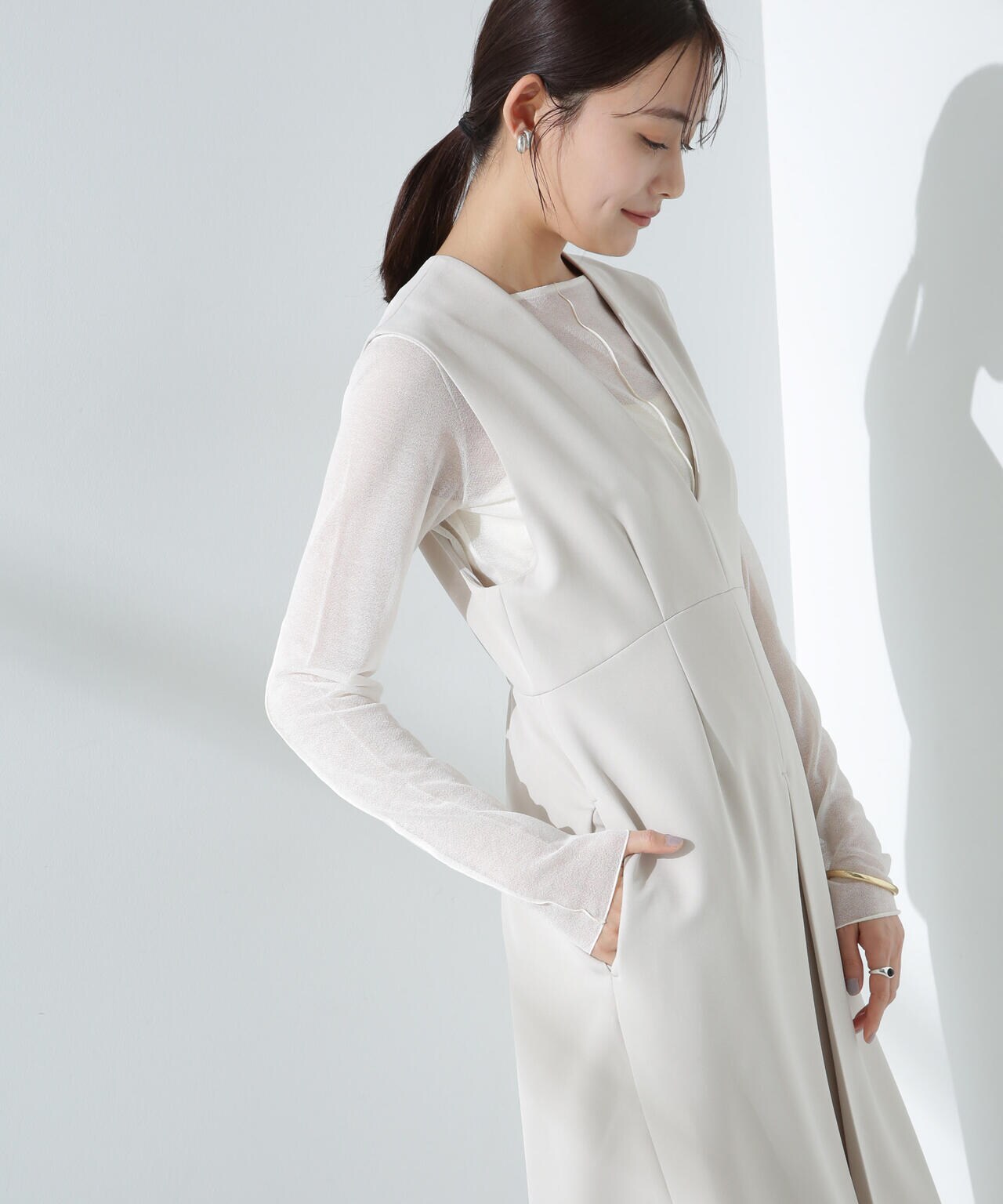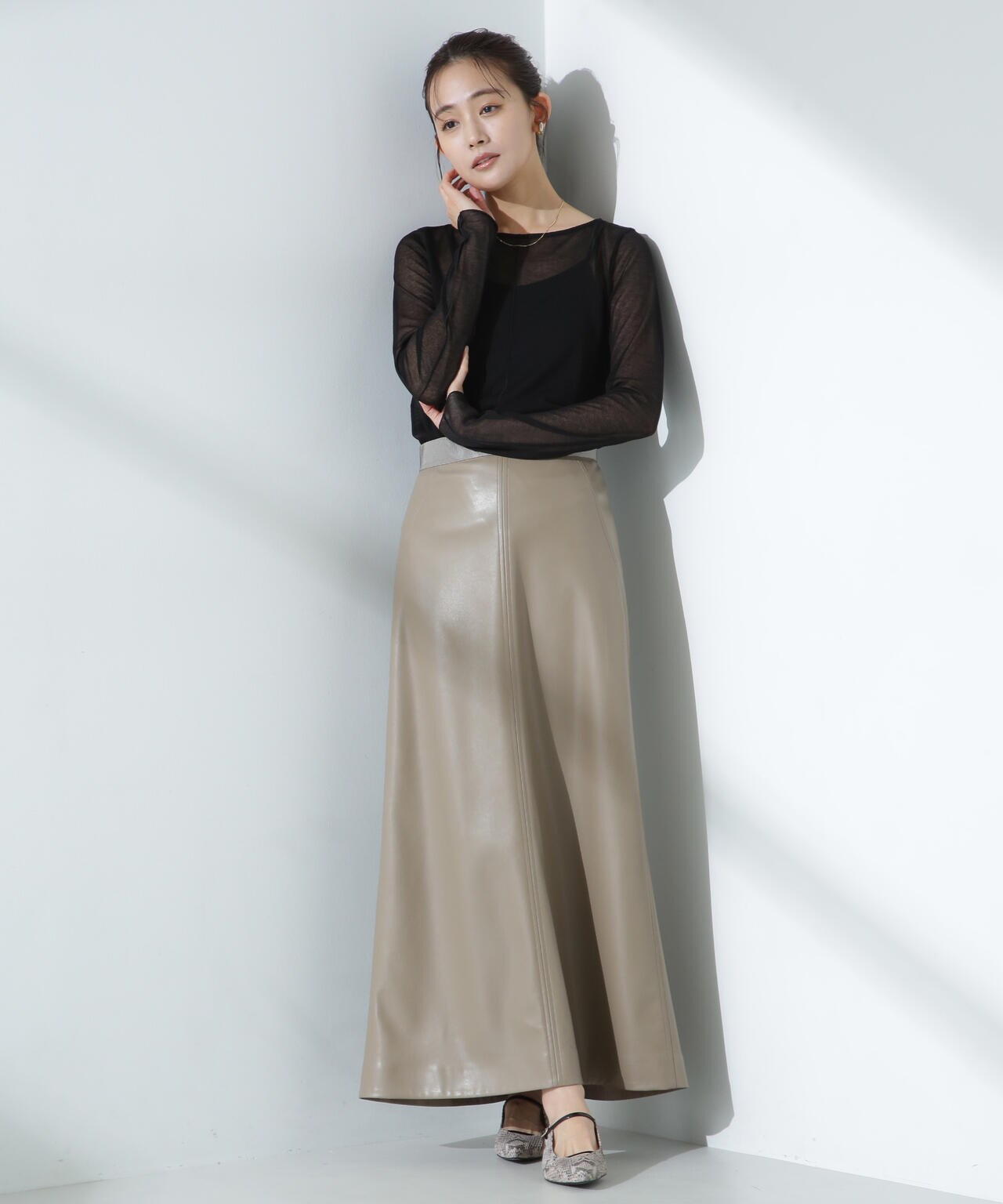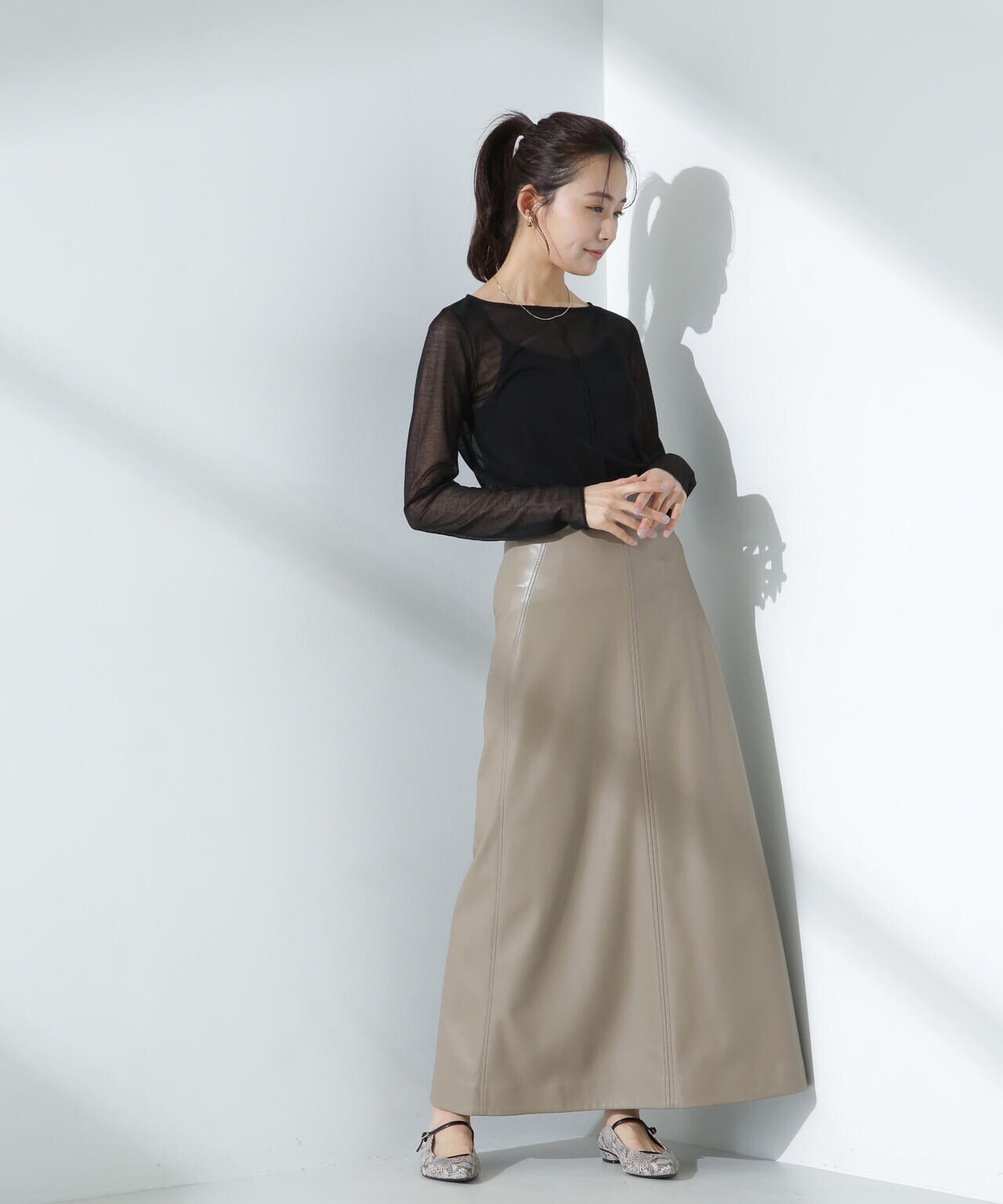ほんのり素肌が透けるシアートップス。寒い時期には、ニットやカーディガンとのレイヤードスタイルにも活躍する一枚。手首をクシュっとさせることで華奢さを演出するスタイリングをご提案します。