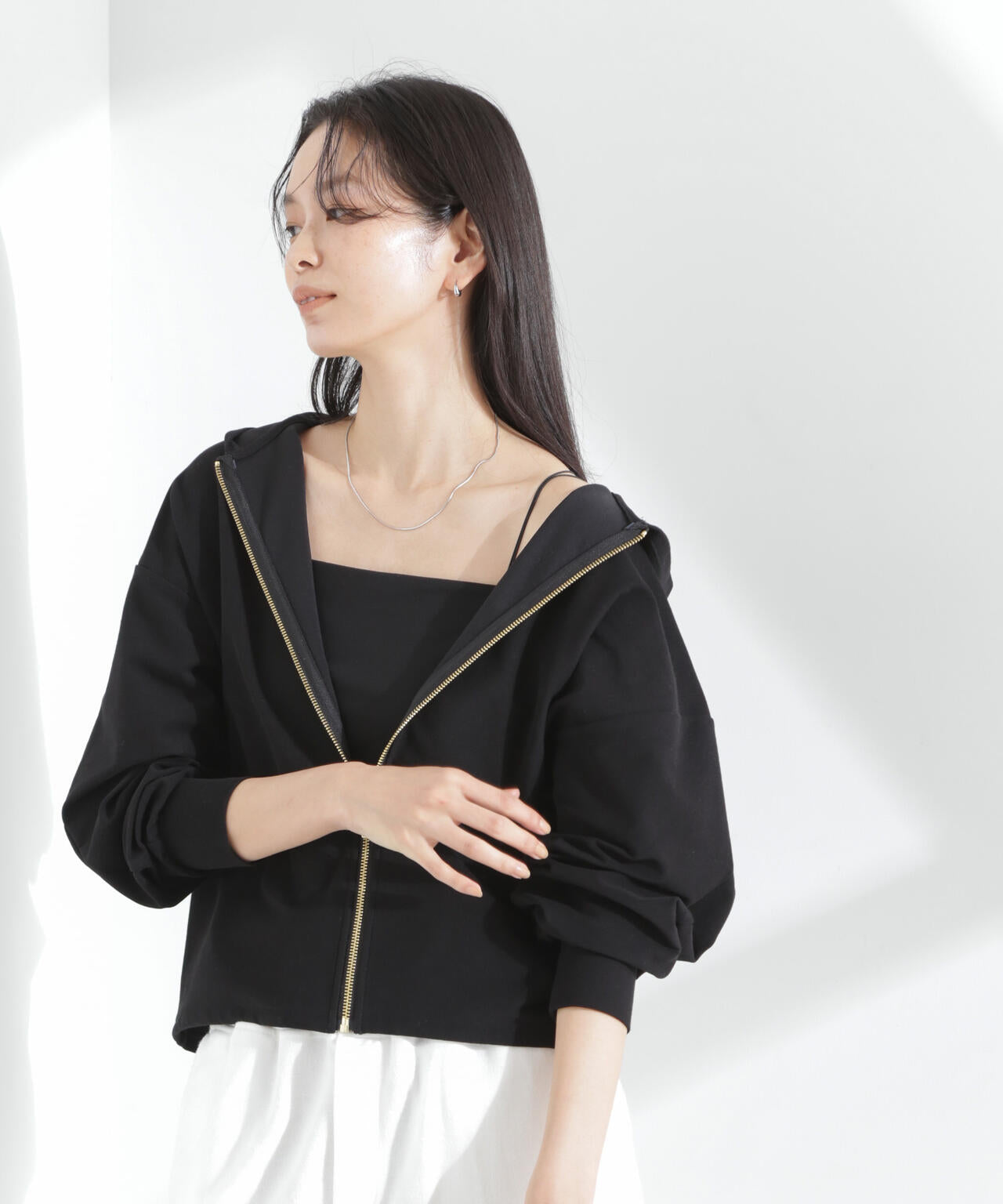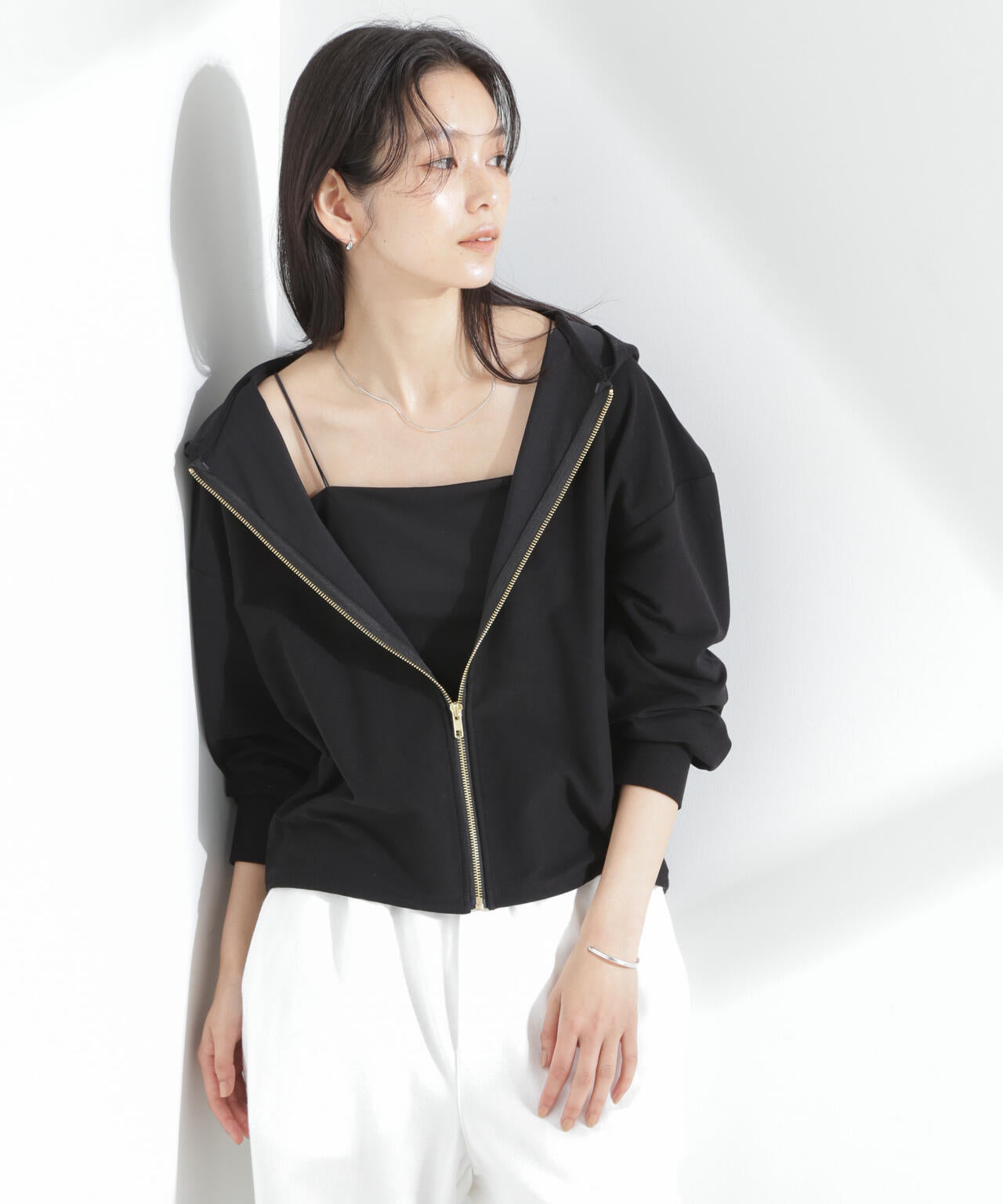 高機能素材を使用した、ミニマルなジップアップパーカー。接触冷感・UVカット・遮熱・吸水拡散といった多機能付きで、暑い日もさらりと快適な着心地をキープできる優秀アイテムです。