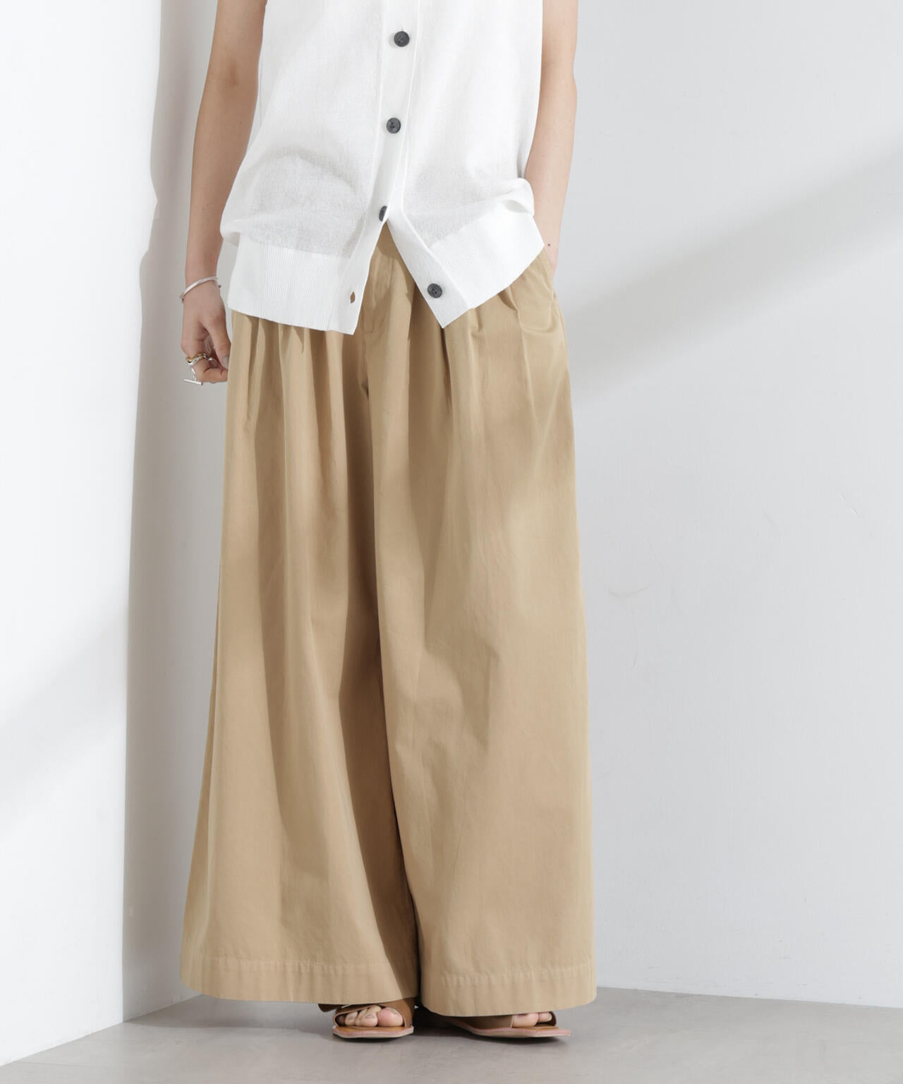 ・フロントに複数のタックを入れたっぷり分量を出したワイドパンツ