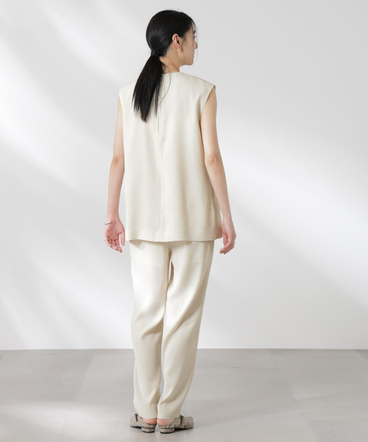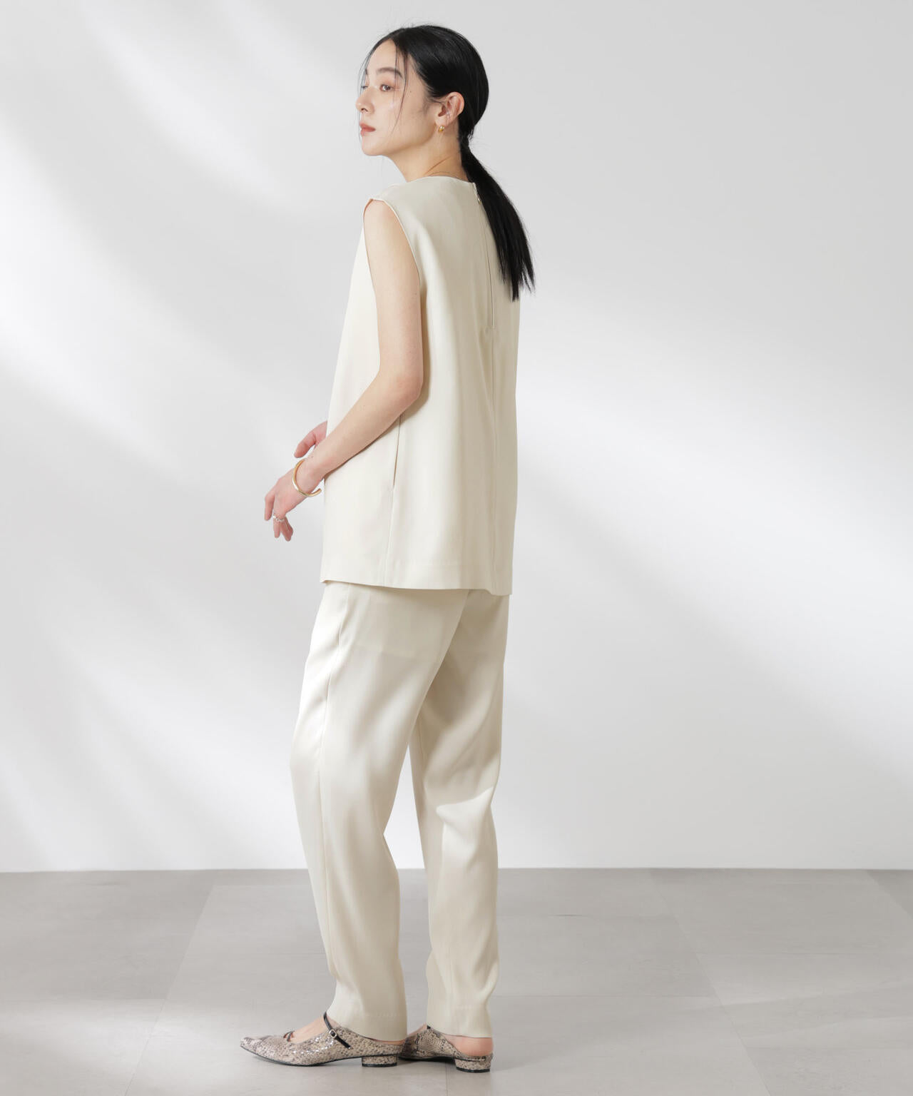・太ももまわりがもたつきにくく、裾にかけてすっきりと細くなっていく拘りのシルエット