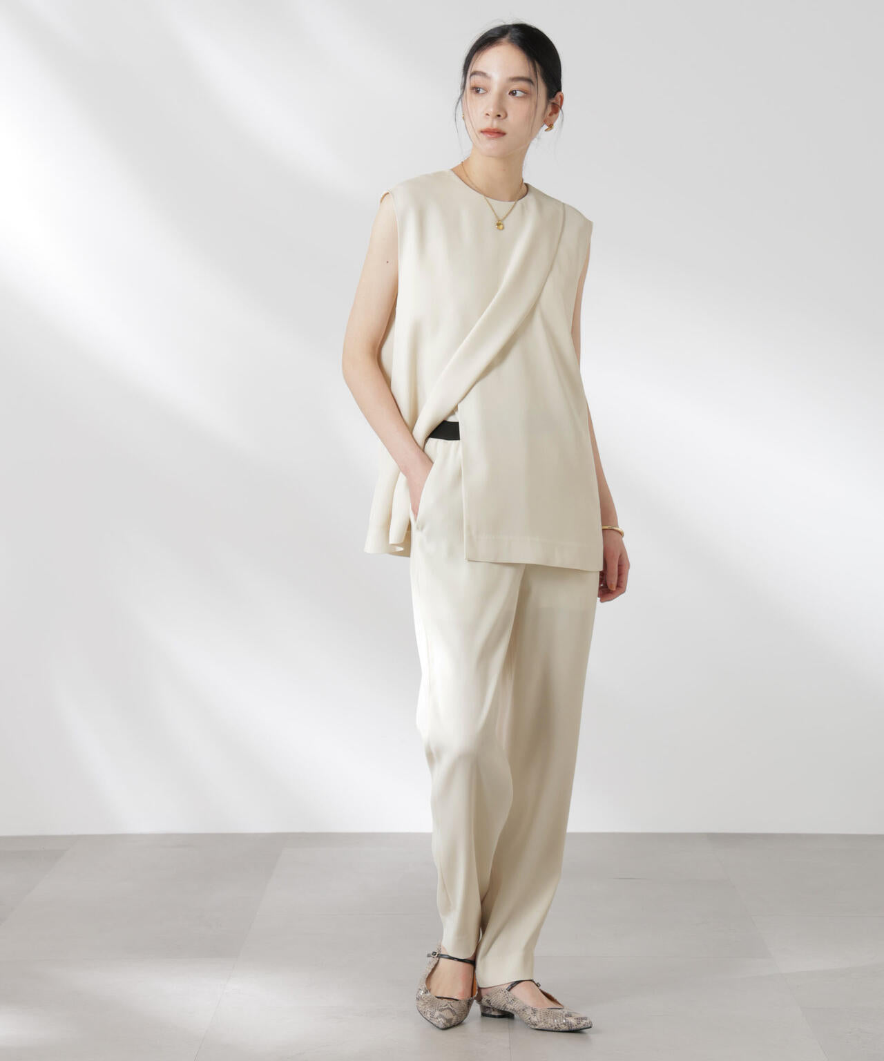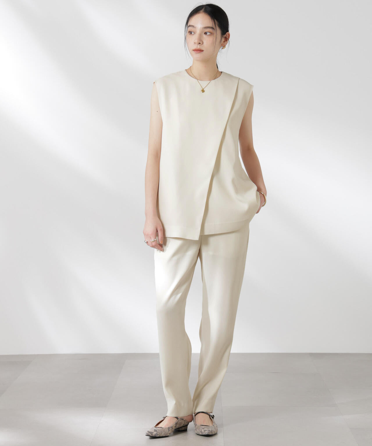 ・モード感ある見え方と適度な落ち感が上品な素材
