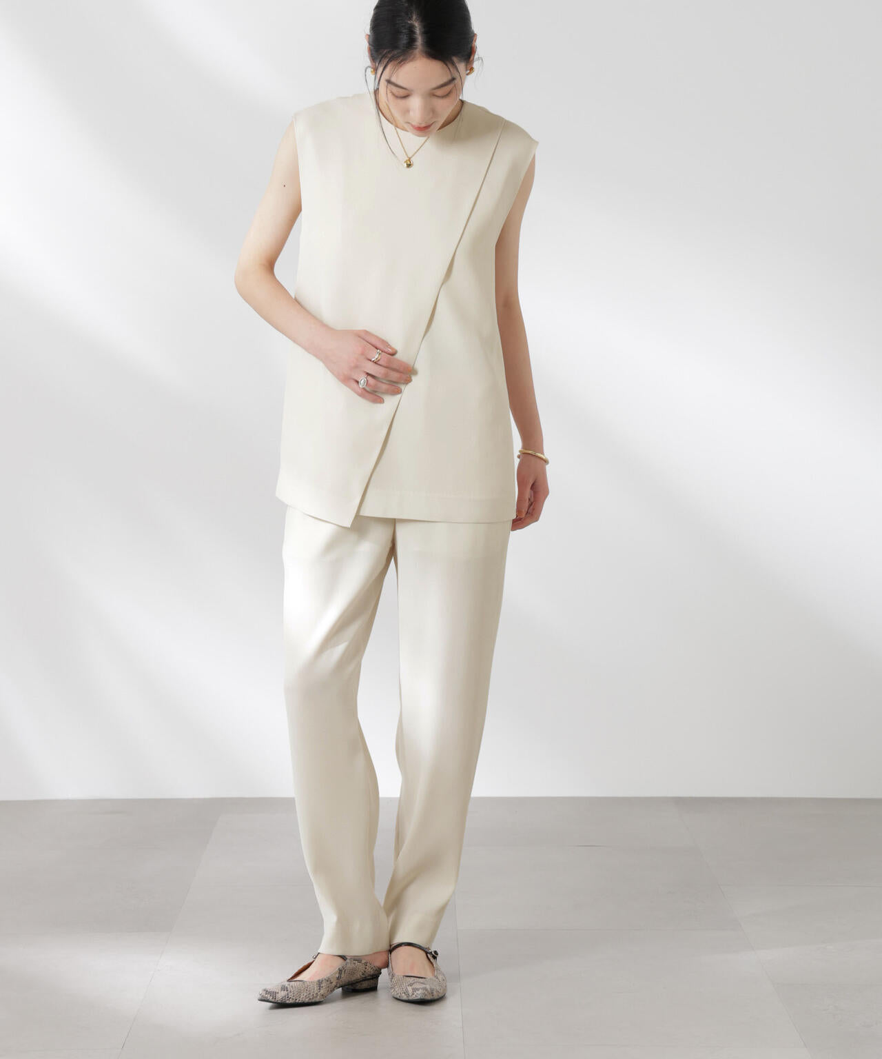 ・チュニック丈のトップスと合わせた際もバランスよくきれいに見えるよう調整