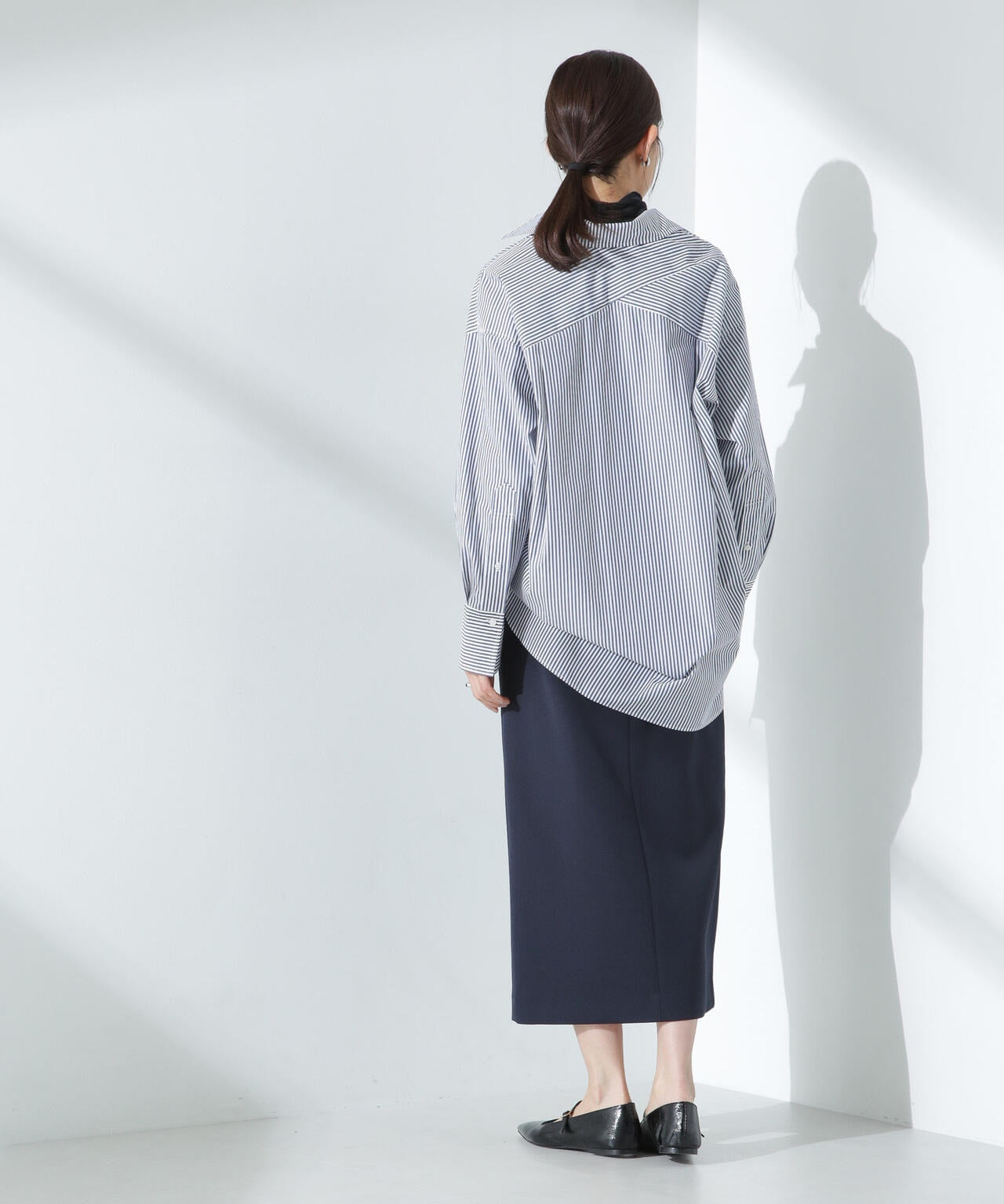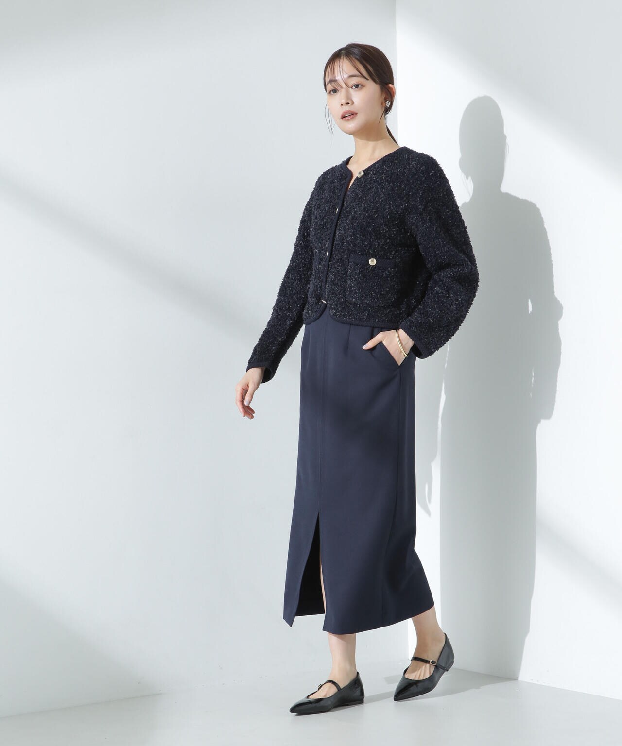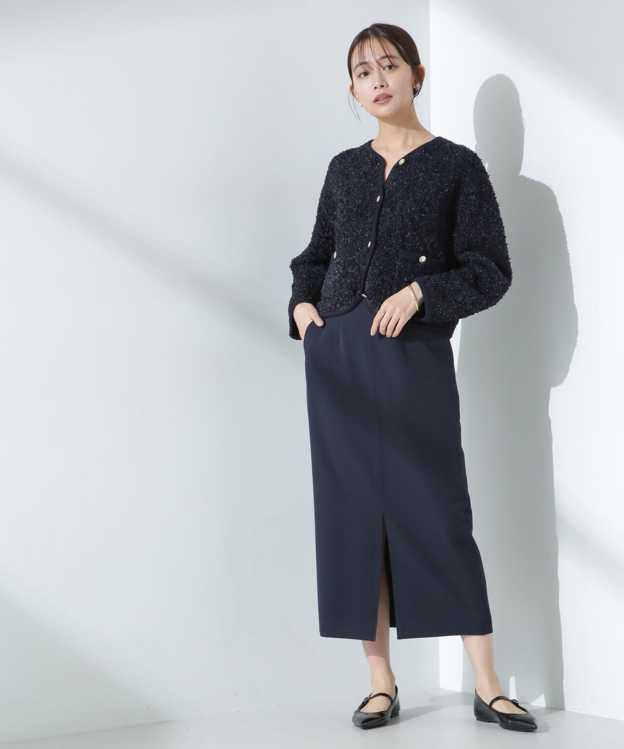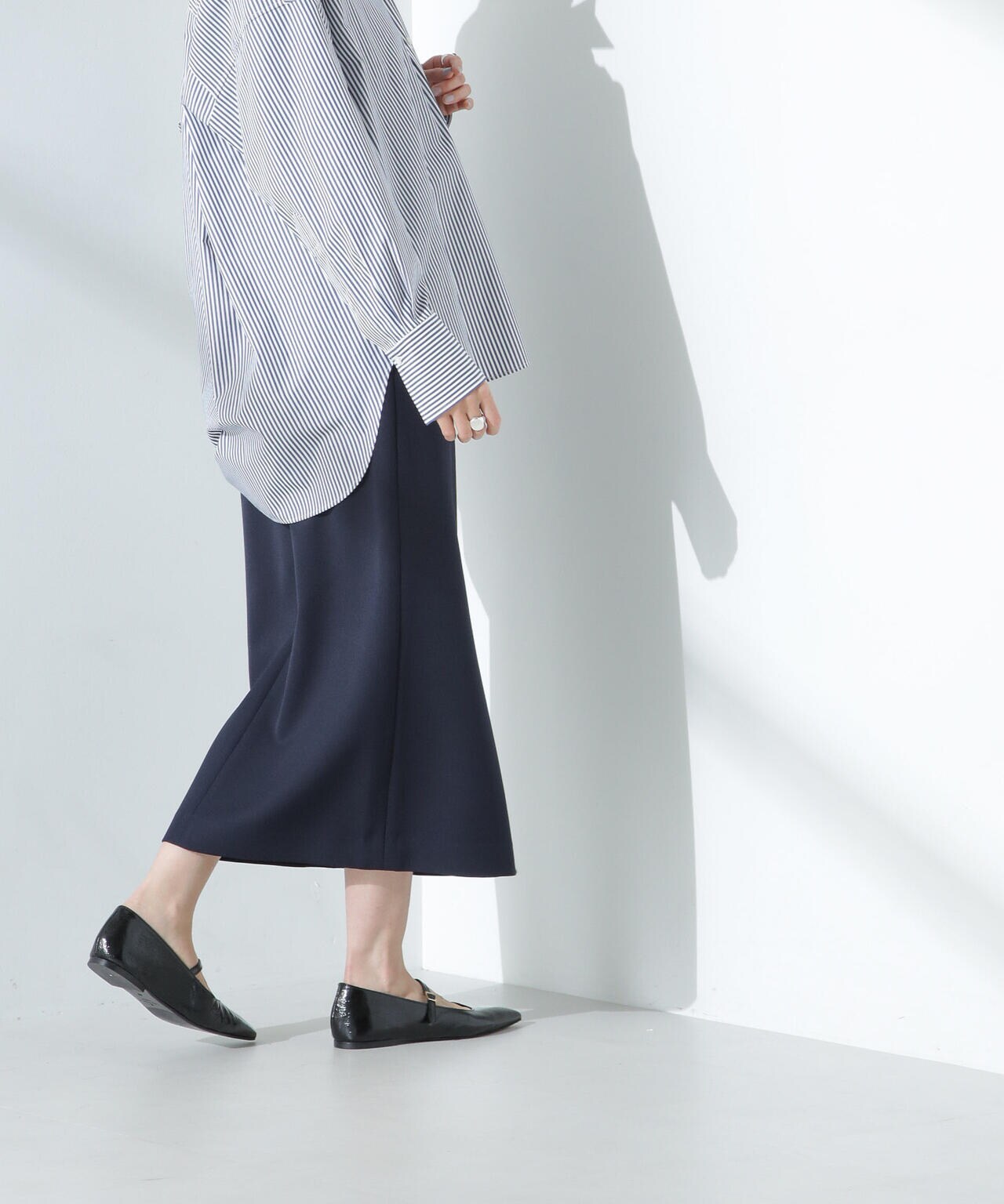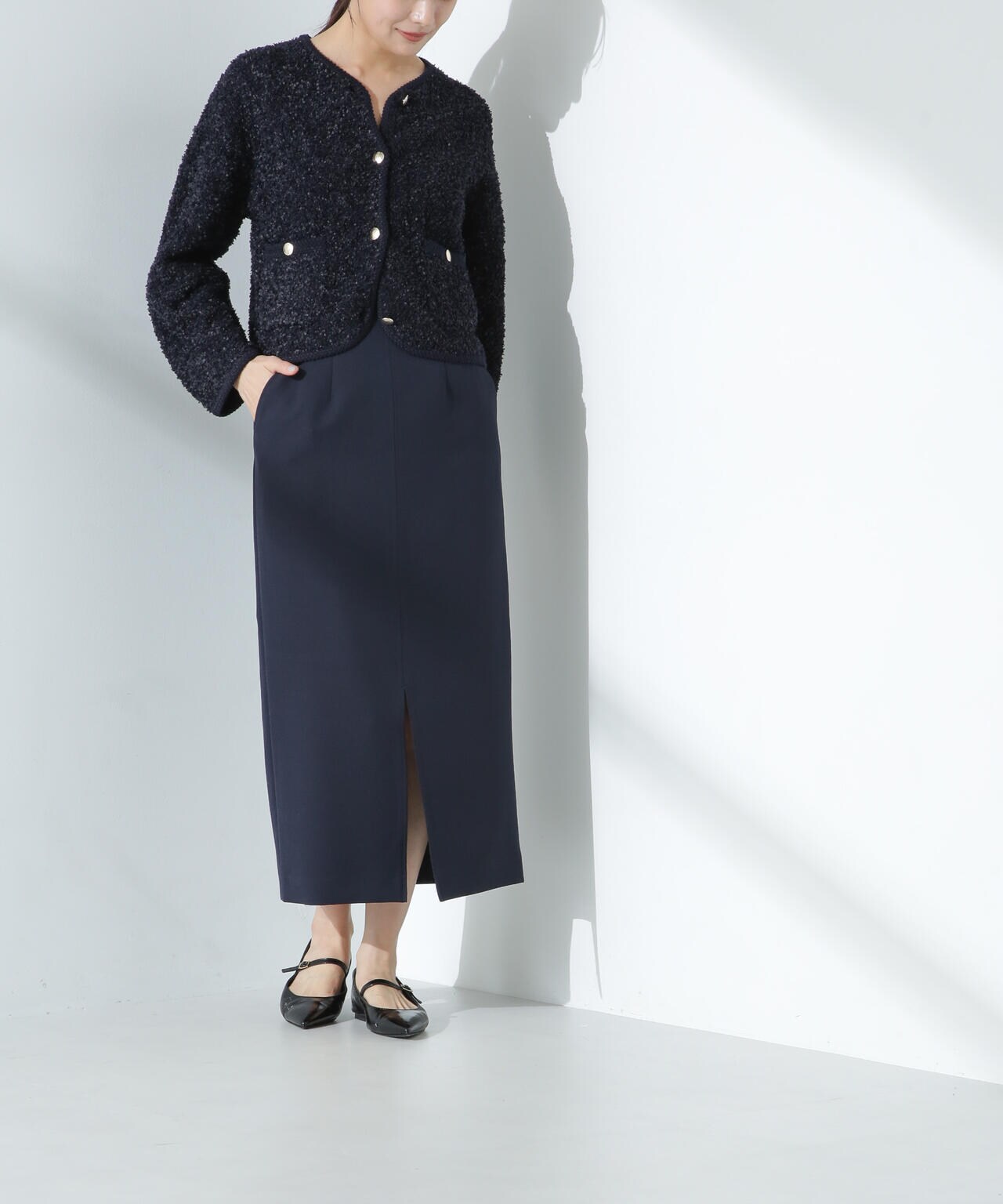 多機能で快適な着心地が叶う、「デイリーファンクション」シリーズのタイトスカート。ゴールドボタン付きのタブデザインがポイントになるので、コンパクトなトップスをインするだけでサマになります。