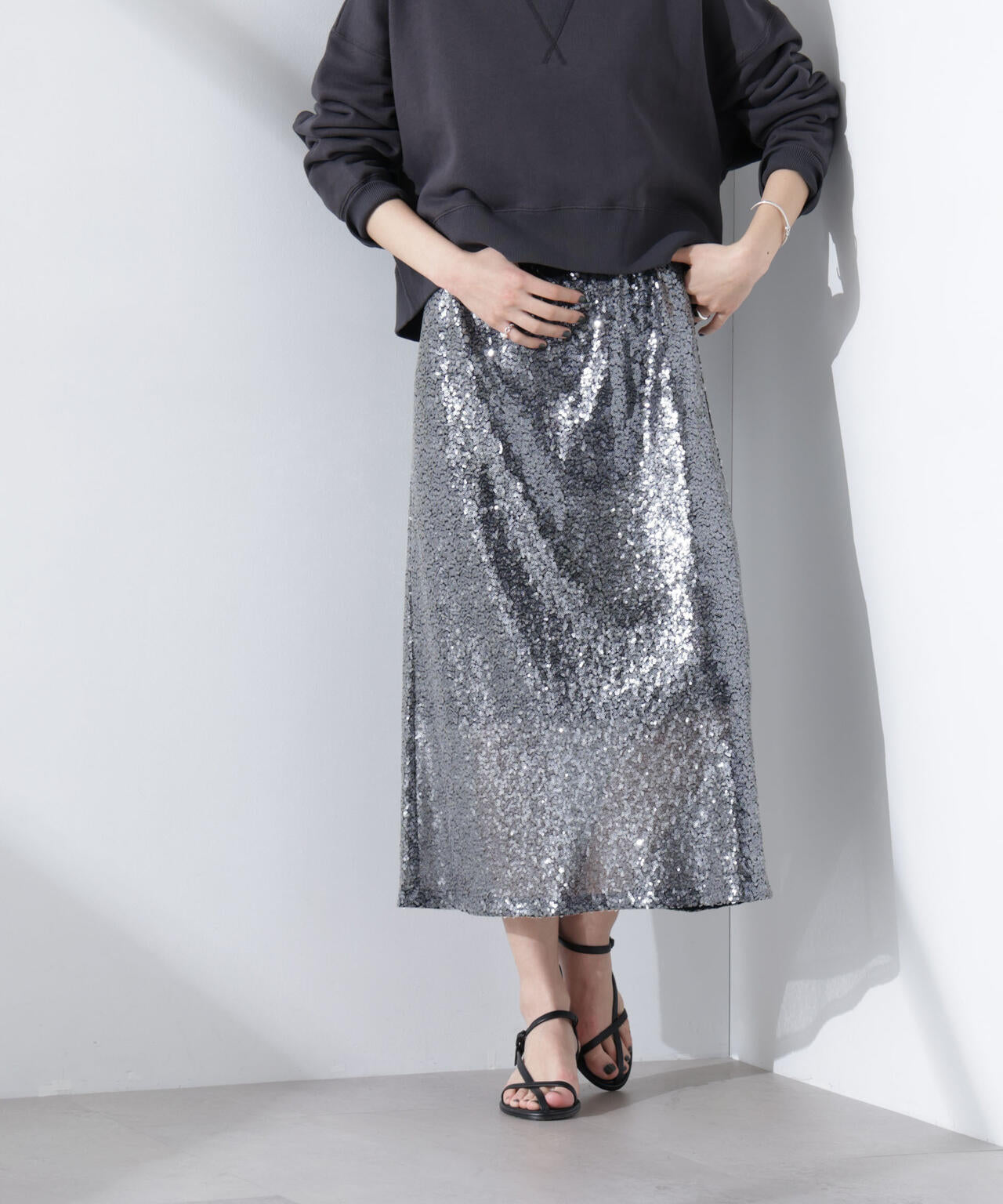 ・モードな印象に映えるブラックカラーのスパンコール