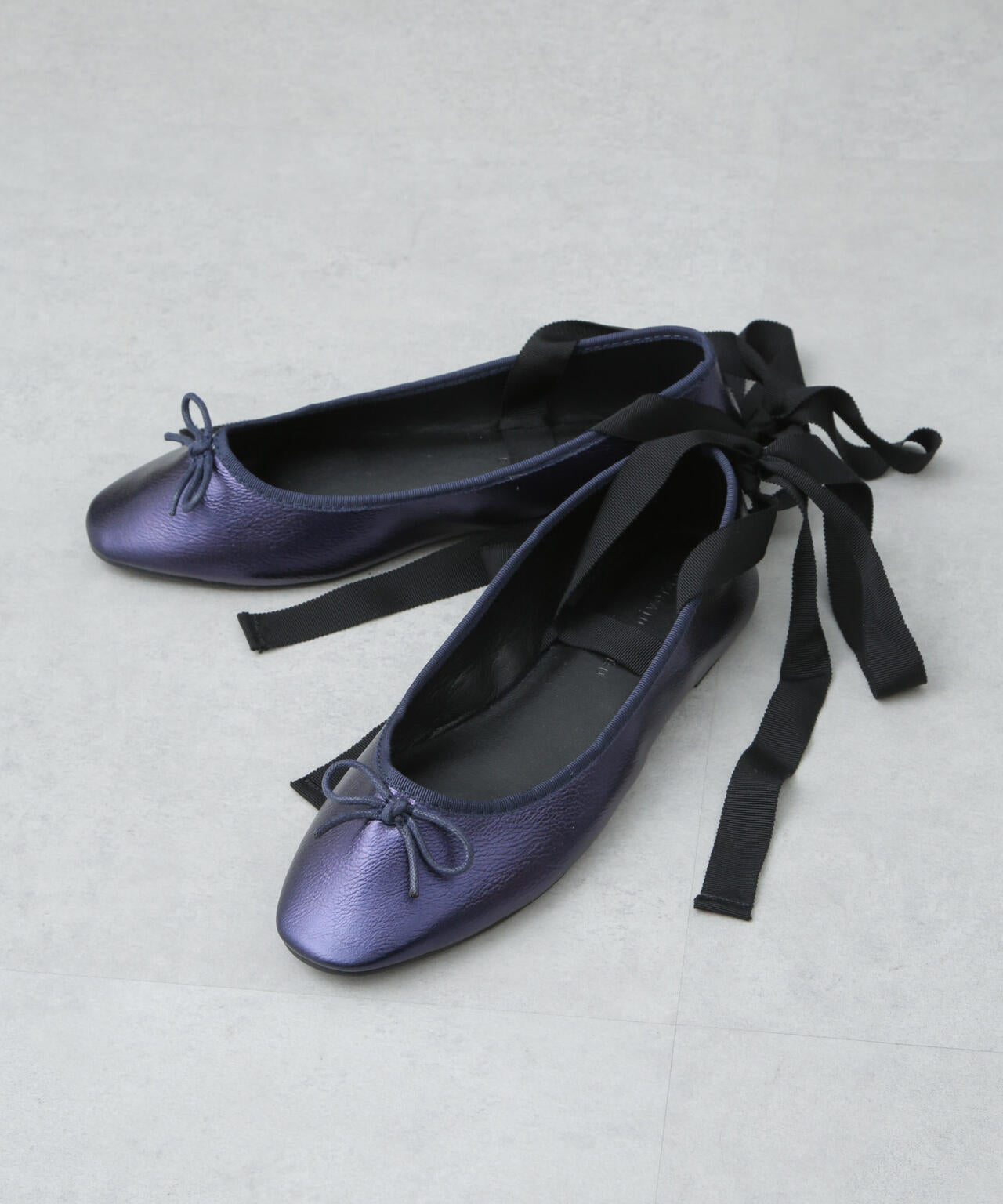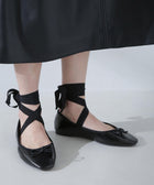 リボン付ラウンドトゥバレエシューズ