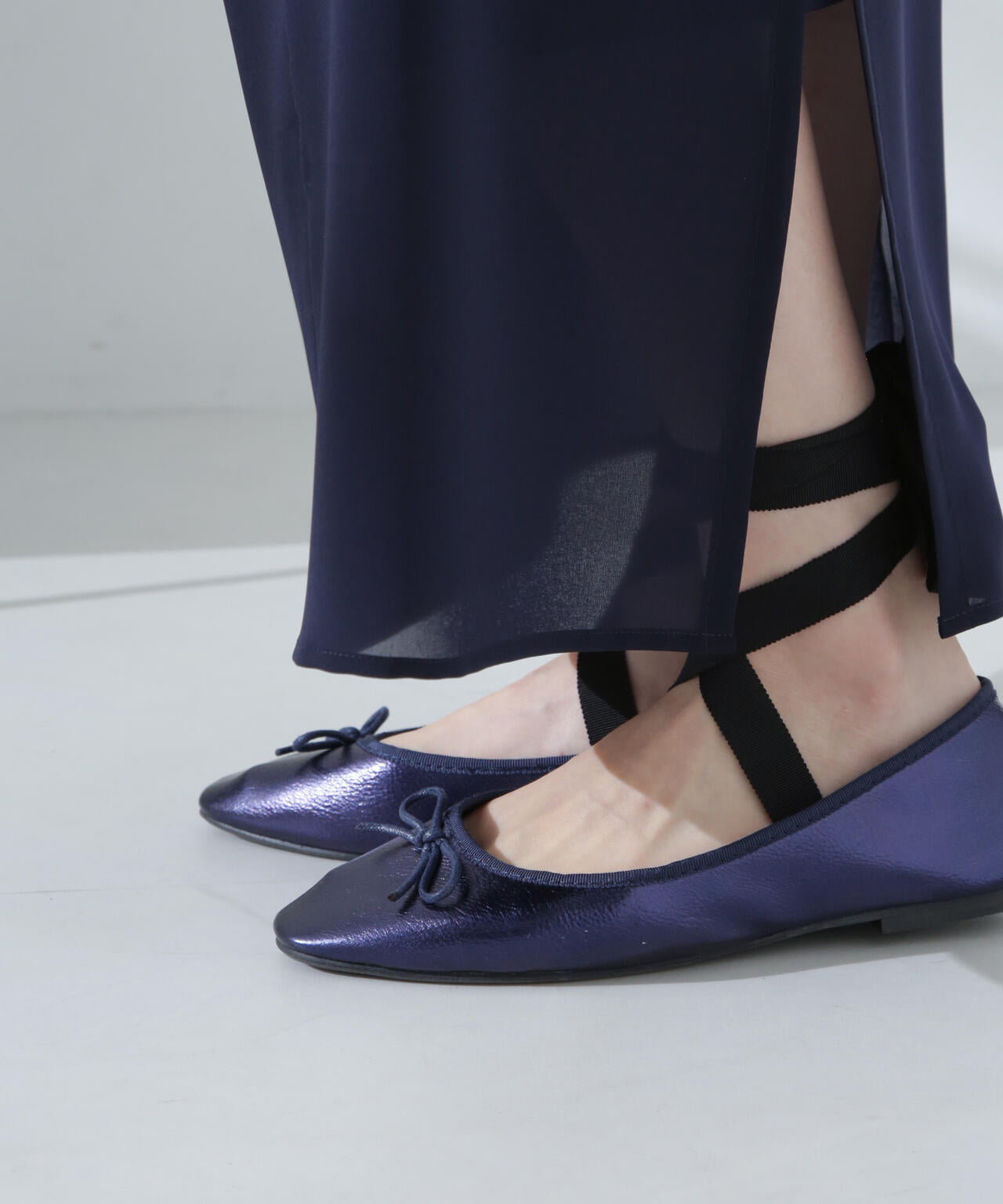 ・セットのリボンテープは1度甲上でクロスして足首に巻いて履く仕様