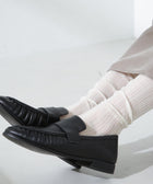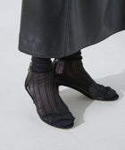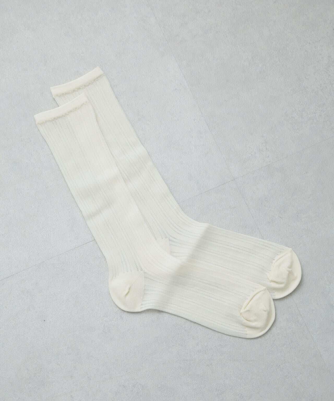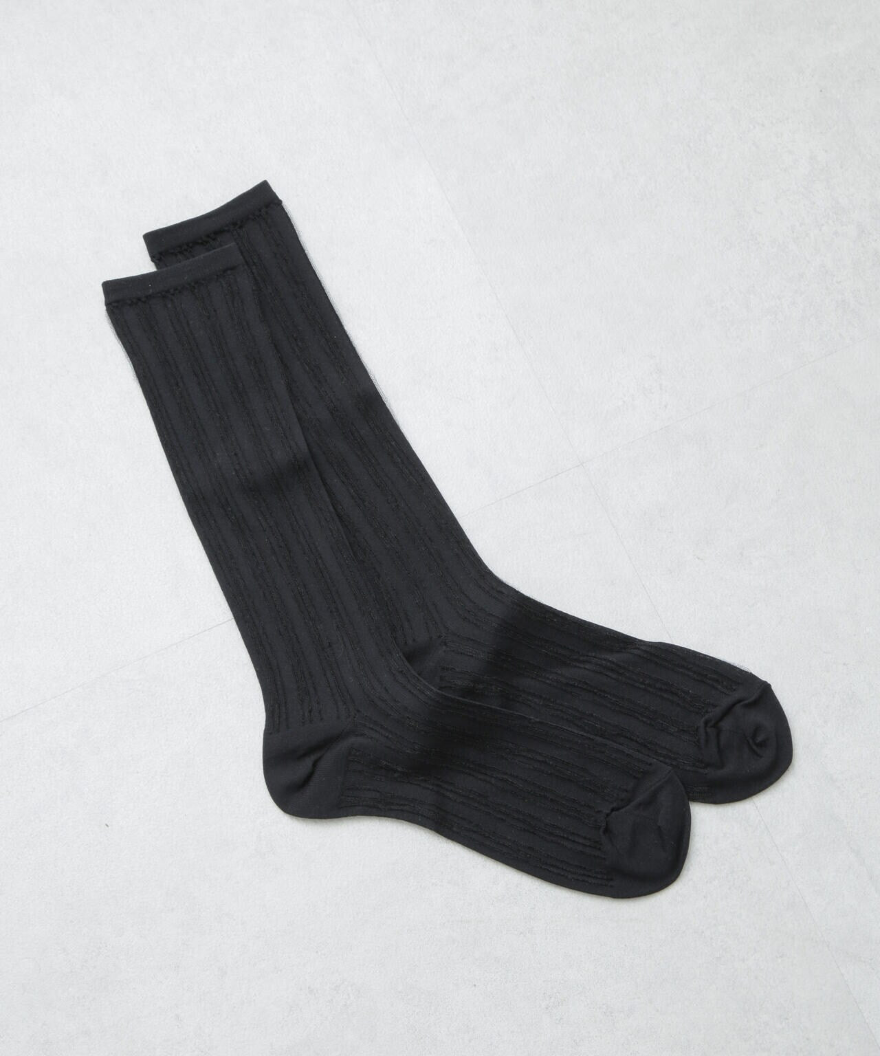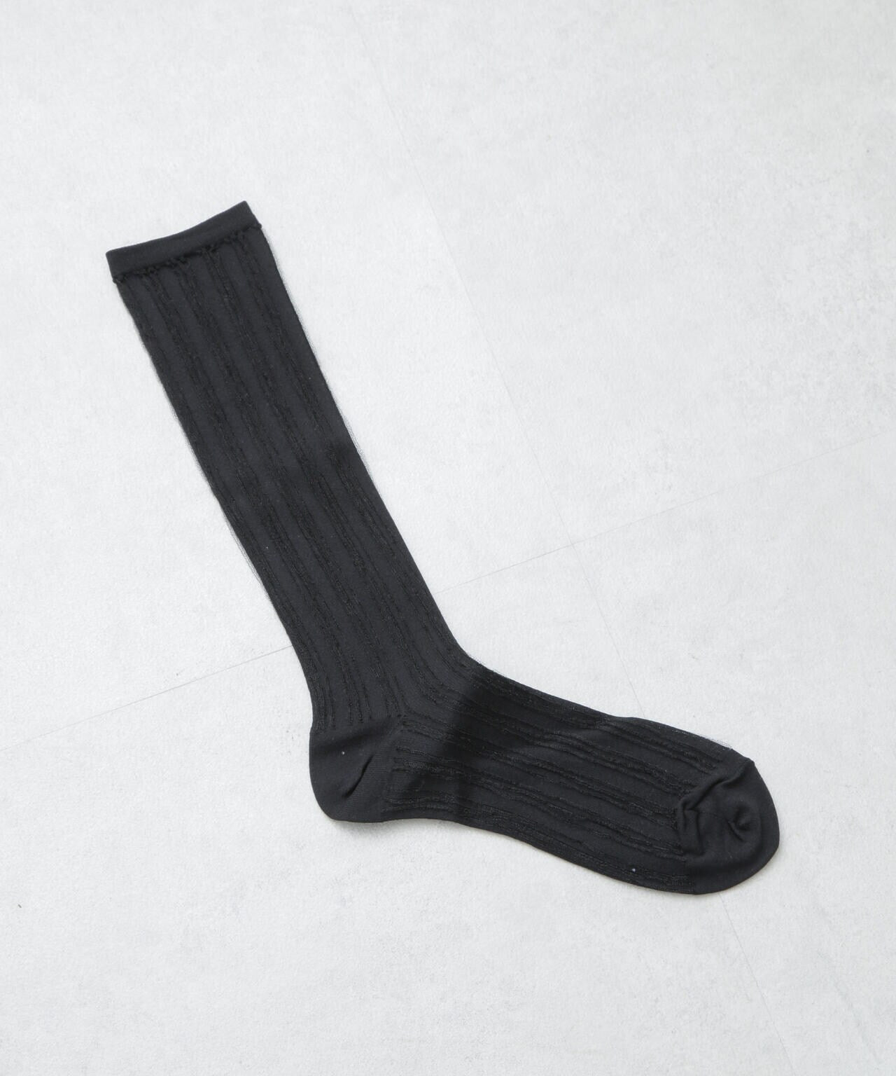 特徴のあるシアーリブ編みがポイントのソックス。シアーと普通の糸ミックス編みのリブ仕様で、履くと透け感のあるストライプデザイン。トレンドのシアーを取り入れているので、お持ちのシューズに合わせていただくと今年らしい足元が完成します!