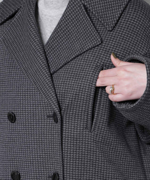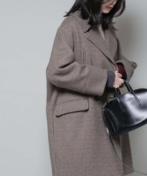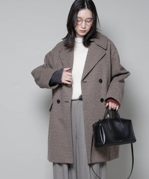 シーズンムード漂うクラシカルなチェック柄コート。ボンディング素材を使用したしっかりとした厚みが、寒い季節でも暖かさをしっかりとキープ。大きめのラペルとダブルブレスト仕様で、トラディショナルながらもモダンな印象に仕上げています。