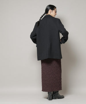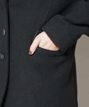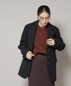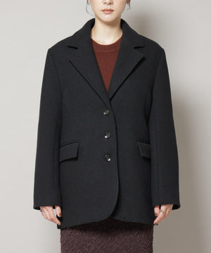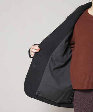 今季らしいムード感のあるクラシックなジャケット型アウター。ウールを50%使用したメルトン素材で仕立てた程よい厚みとハリ感が魅力。秋口から冬本番までロングシーズン活躍する一着です。