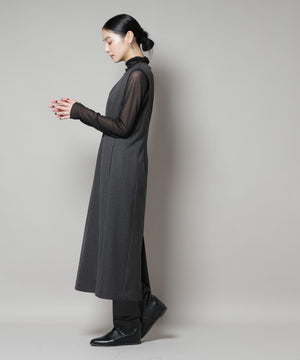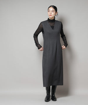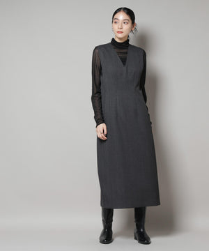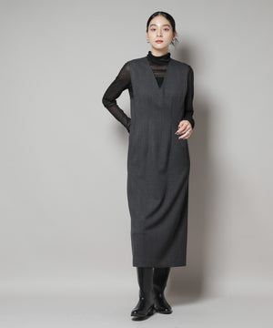 ・シーズンムード漂うデザインで仕立てたVネックワンピース