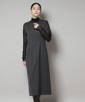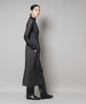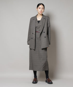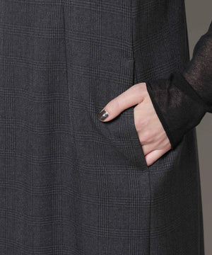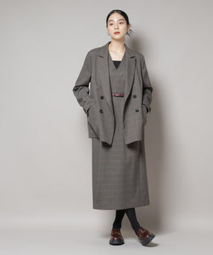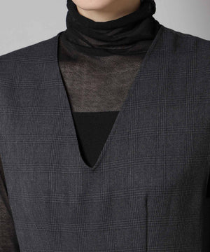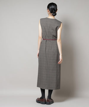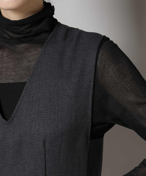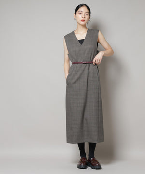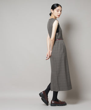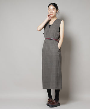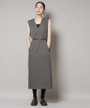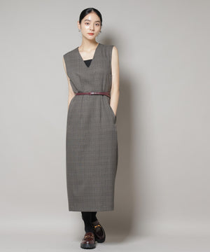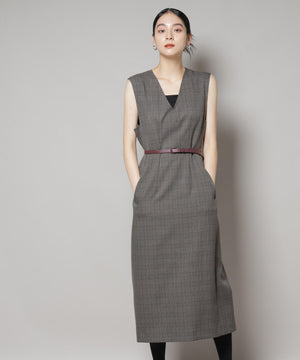 ストレッチサージチェックVネックワンピース(セットアップ可)