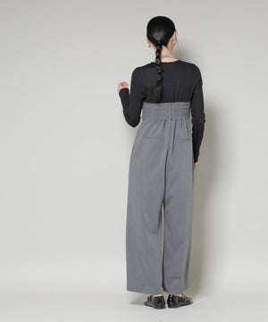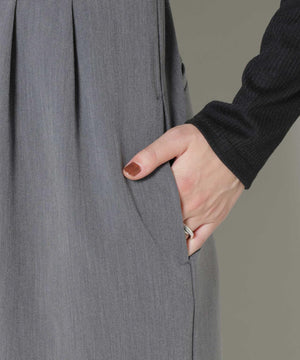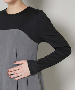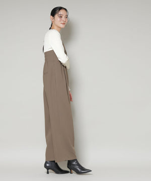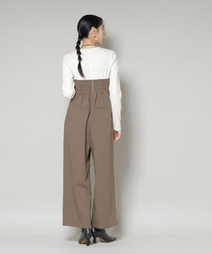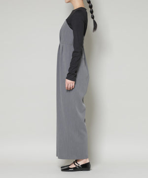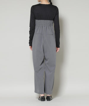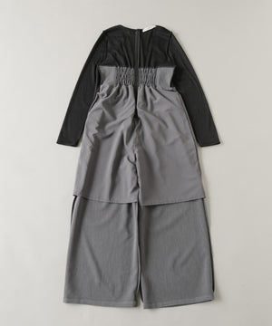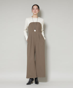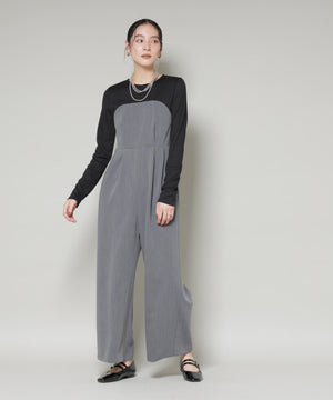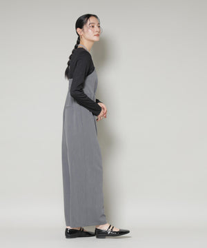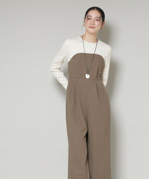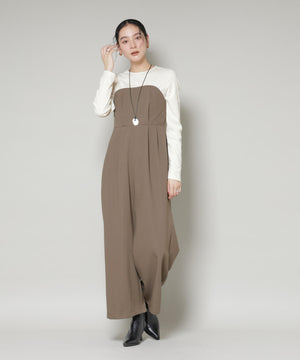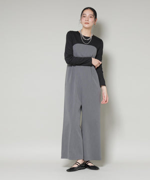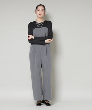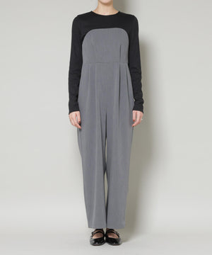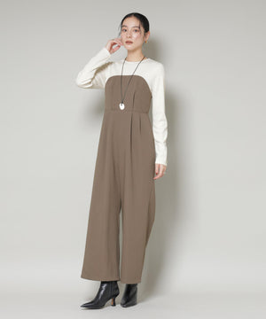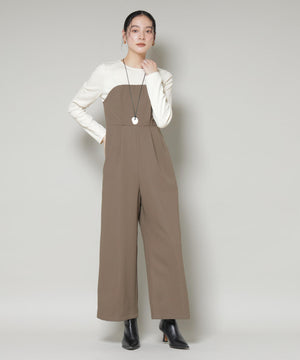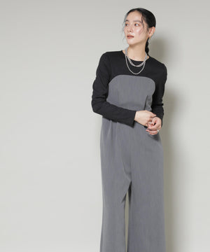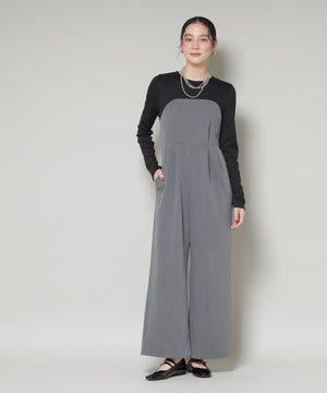 カジュアルテイストのリブカットソーと、キレイ目なダブルクロスをドッキングさせたオールインワン。このまま一枚で着るだけでスタイリングが完成し、ジャケットを羽織れば軽いオケージョンにも使え、オンオフ兼用できるアイテムです。