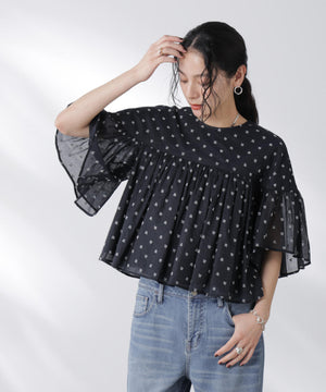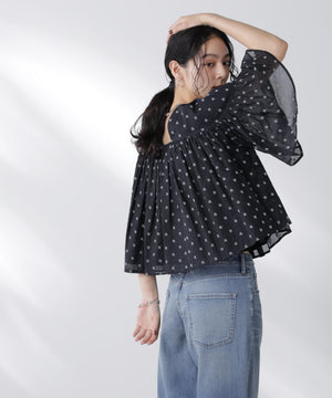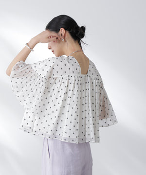 ・胸元にギャザーをたっぷり入れ、ふわっとエアリーなシルエットに〇