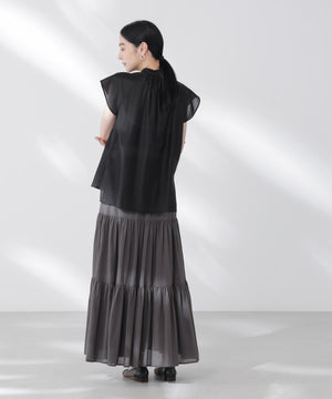 ・衿ぐりに入ったギャザーがふわっとドレープ感を演出