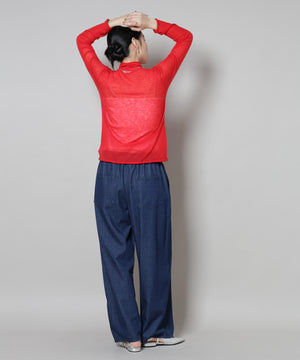 中性洗剤を使用して下さい。ネットを使用してください。単独洗いをして下さい。もみ洗いは、避けて下さい。あて布を使用してください。濡れたままの放置や、長時間の浸漬はしないで下さい。この商品は洗濯で多少縮みますので洗濯後、形を整えて干してください。着用中の摩擦や洗濯により、毛羽立ちや毛玉(ピル)が生じる事がありますので、お取扱いにはご注意ください。この商品は、大変デリケートな素材を使用しております。下記の点に充分ご注意の上、お取扱いください。素材特性上、非常にデリケートな商品ですので、着用時や着脱時に過度な力が加わりますと破れてしまう恐れがありますのでご注意下さい。着用時にベルト・バッグ・アクセサリー・身の回りのとがったもの等との摩擦や、ひっかかりにご注意下さい。洗濯やクリーニングの際に、ネットを使用するなど他のものとのひっかかりにご注意ください。