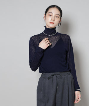 透け感のある繊細なウール100%のタートルニットプルオーバー。特殊な糸と製法で仕立てているので、優れた柔らかさで着心地が良く、ベーシックながら特別感のある一着です。