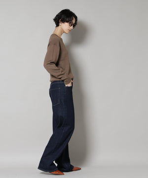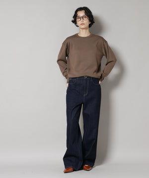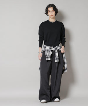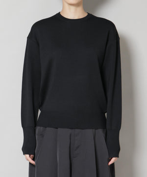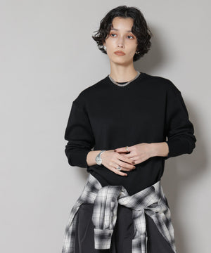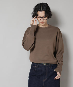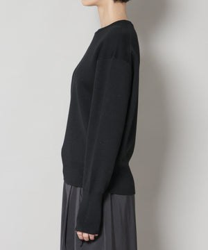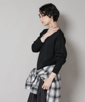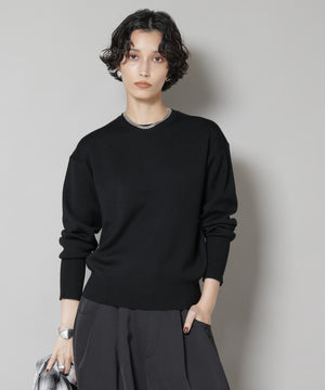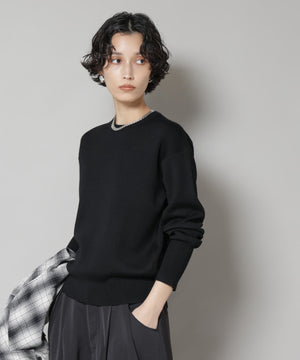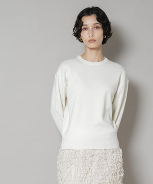 ・程よく上品に見せてくれるやや詰まったクルーネック