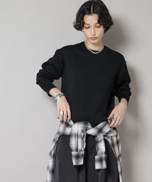NANO universe定番人気アイテムの毛玉レスニットシリーズ。今年は素材、工場、編地、デザインのすべてを全体的に見直しアップデート!シンプルなクルーネックニットは、なめらかな肌ざわりと共にスムース編みならではの程よい厚みとやわらかなふくらみが特徴。身体に張り付かず、優しく包み込むような程よいゆとりのあるサイジングで、きちんと感がありながらもストレスのない着心地も魅力です。