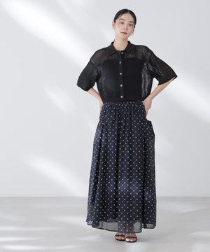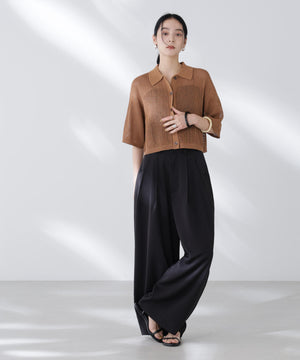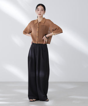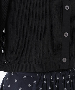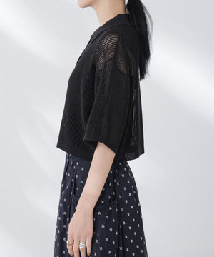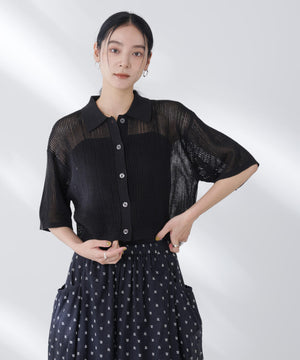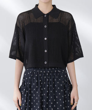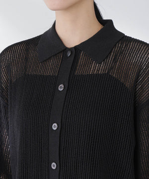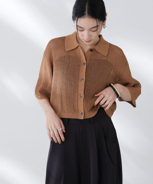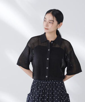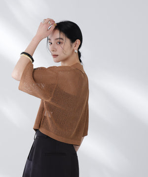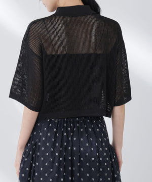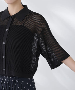 メッシュニットを衿付きデザインで仕立てたトレンド感のあるポロカーディガン。通気性が良く涼しい肌触りが夏の着回しに重宝する一着。