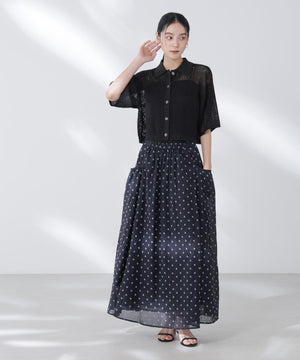 ・コットンブレンド糸を使用しかぎ編み風のメッシュ組織で編み立てた一着