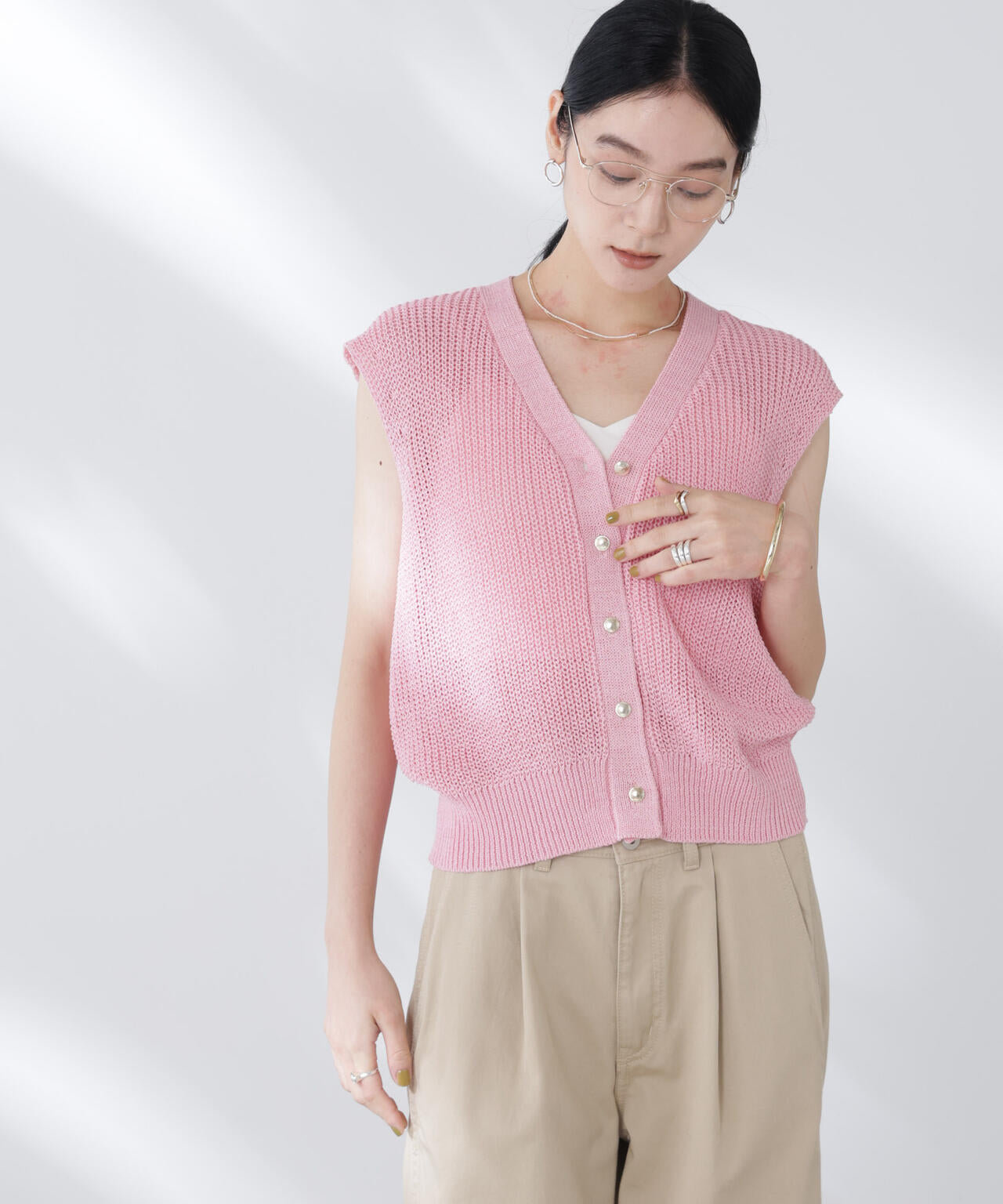 ペーパーヤーン畦ニットベスト