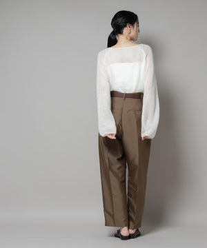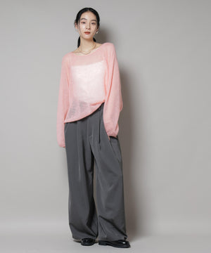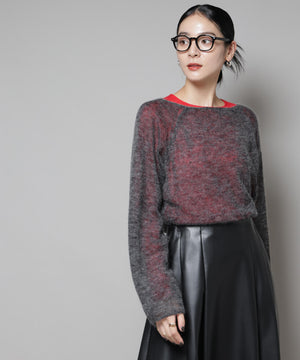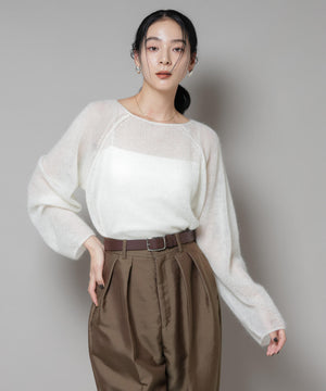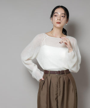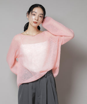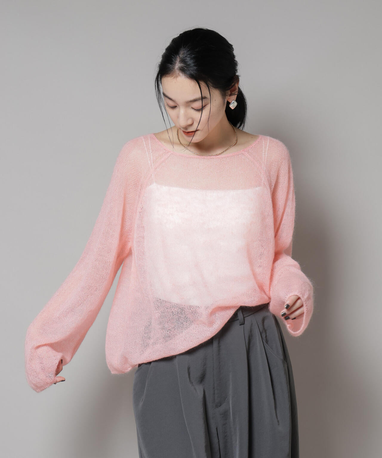 秋らしいモヘヤ混の糸で仕立てたトレンド感あるシアーニット。透け感を生かして夏はタンクトップやキャミソール、秋は薄手のカットソーと合わせたりとレイヤードを楽しめるアイテムです。