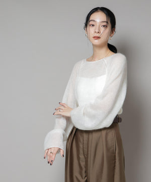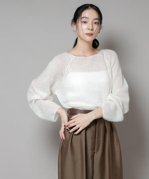 ・モヘヤ混のふわっとした糸を5ゲージで甘く繊細に編んだ一着