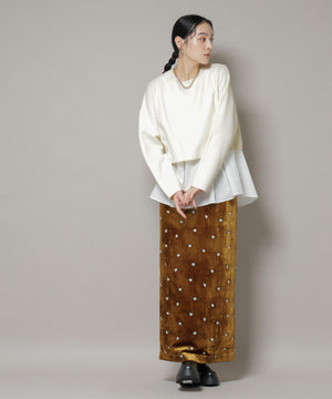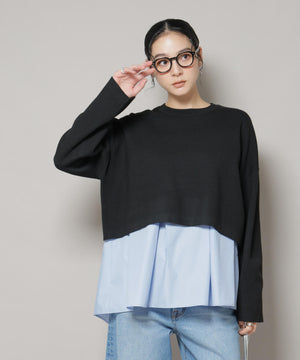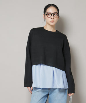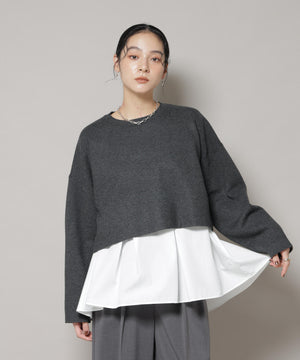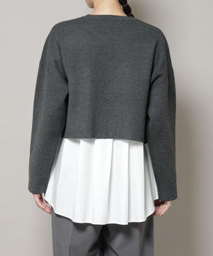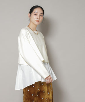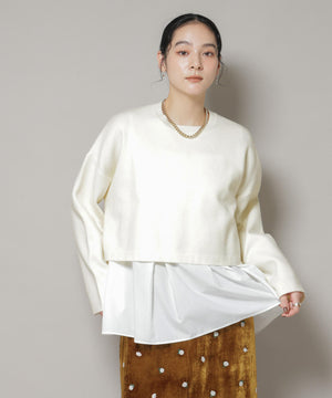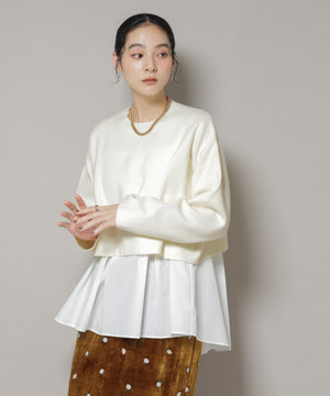 ダブルジャガードニット×タックブラウス ペプラムセット