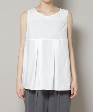 ・タックの入ったフレアシルエットで、レイヤードしやすいノースリーブ型ブラウス
