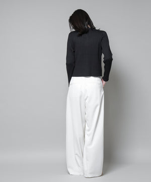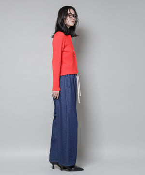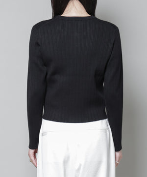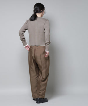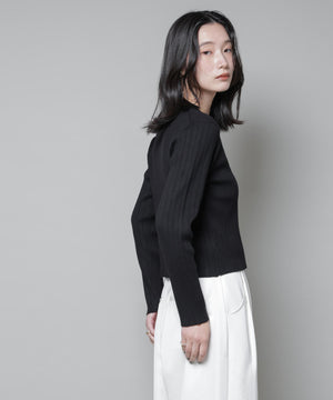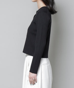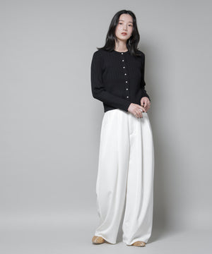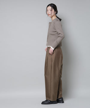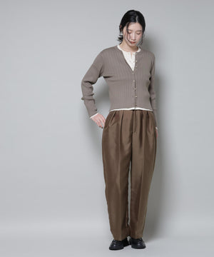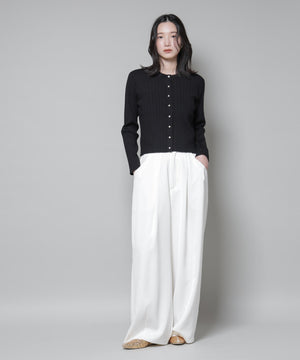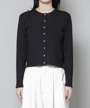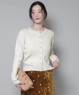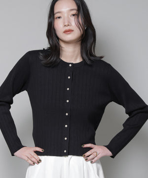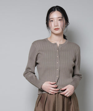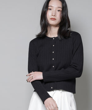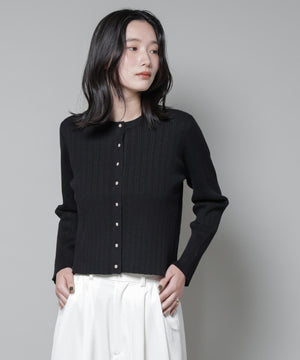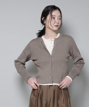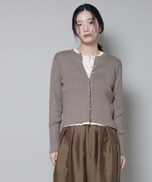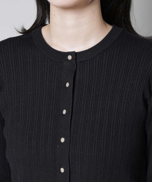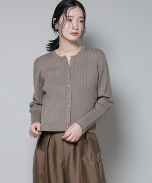 ・クルーネックの詰まった衿ぐりが上品な印象のリブカーディガン