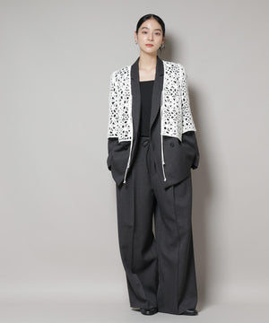 ・同素材展開のダブルジャケットとのセットアップスタイルもおすすめ