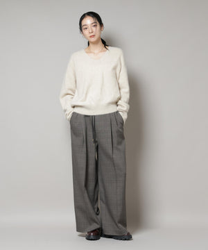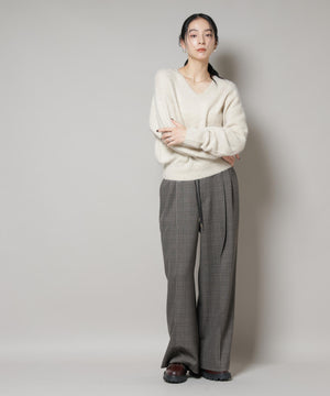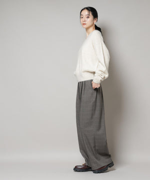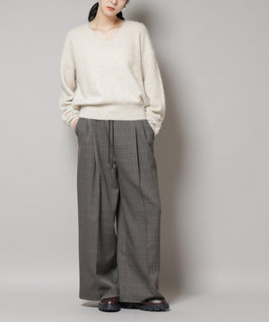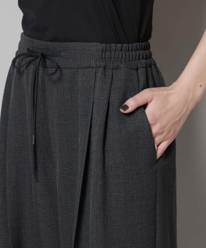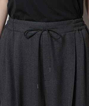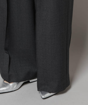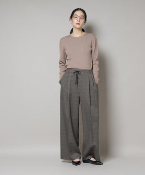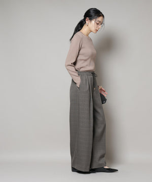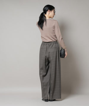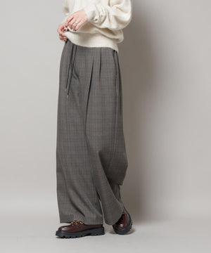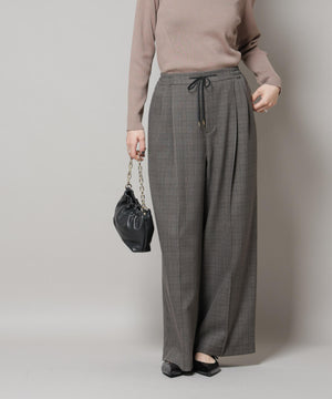 ストレッチサージチェックピンタックイージーワイドパンツ(セットアップ可)