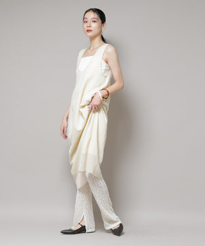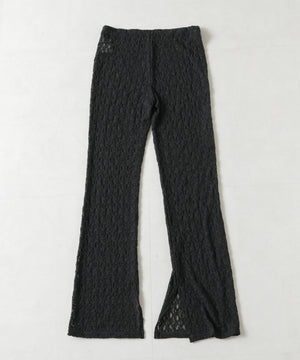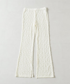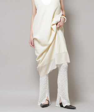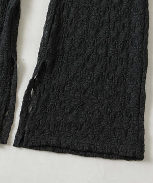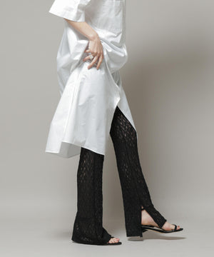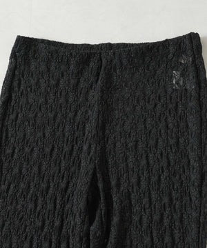 繊細なフラワーモチーフのレース生地を使用した、軽やかで華やかなムードのレギンスパンツ。透け感のある素材が女性らしさを引き立てながら、脚に沿う美しいシルエットでレイヤードスタイルに抜け感と立体感をプラス。いつものスタイリングにプラスするだけで、トレンド感と個性を引き立ててくれる一本です。