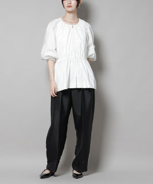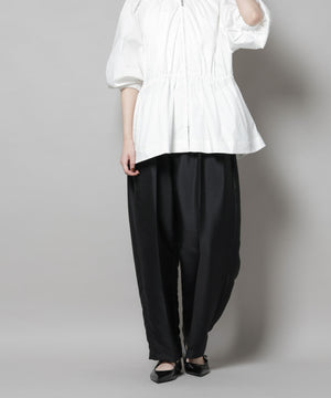 ・コクーンラインがモダンな印象を添える、大人のためのバレルパンツ